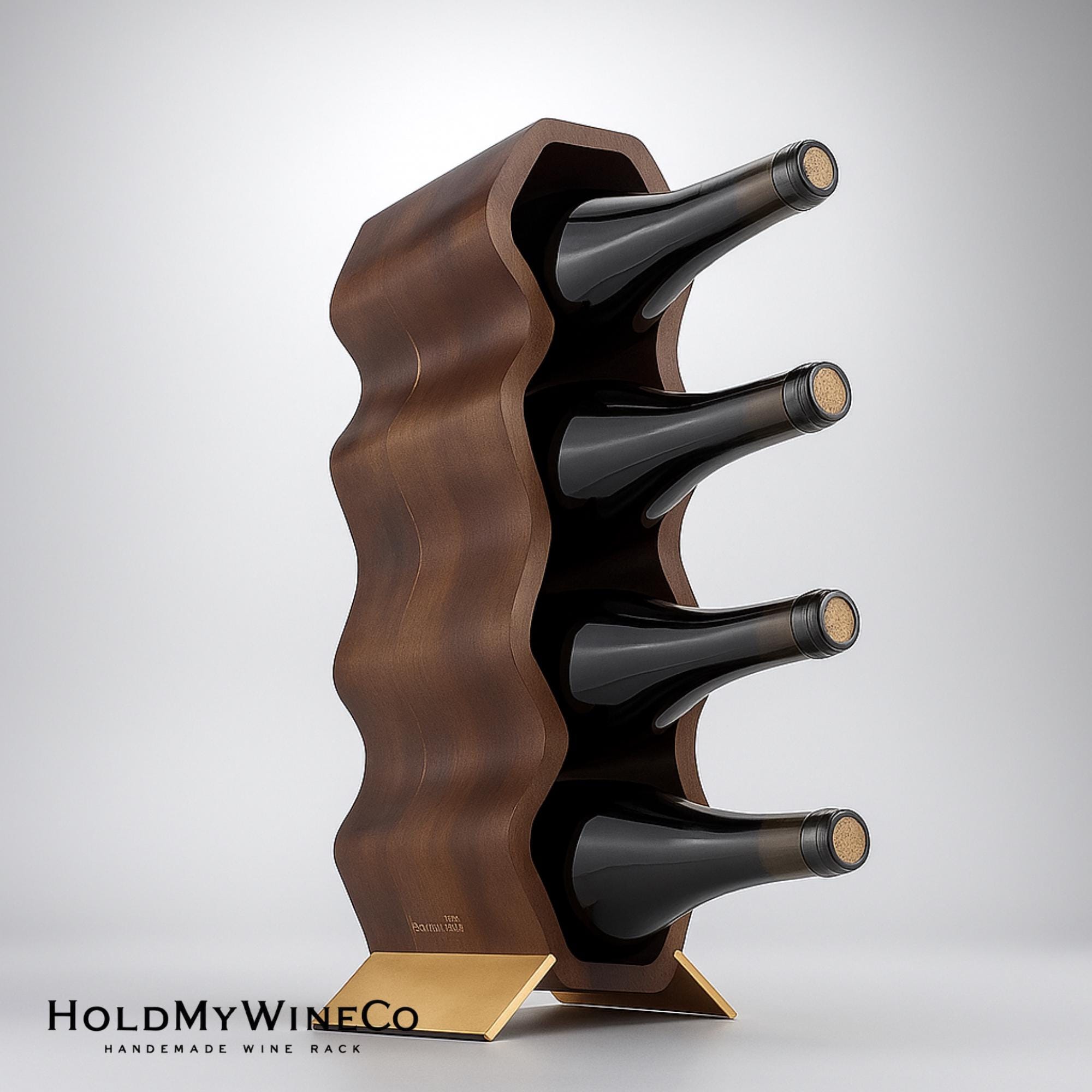 Modern Wooden Wine Rack Holder with Wavy Design, Handmade Bottle Or...