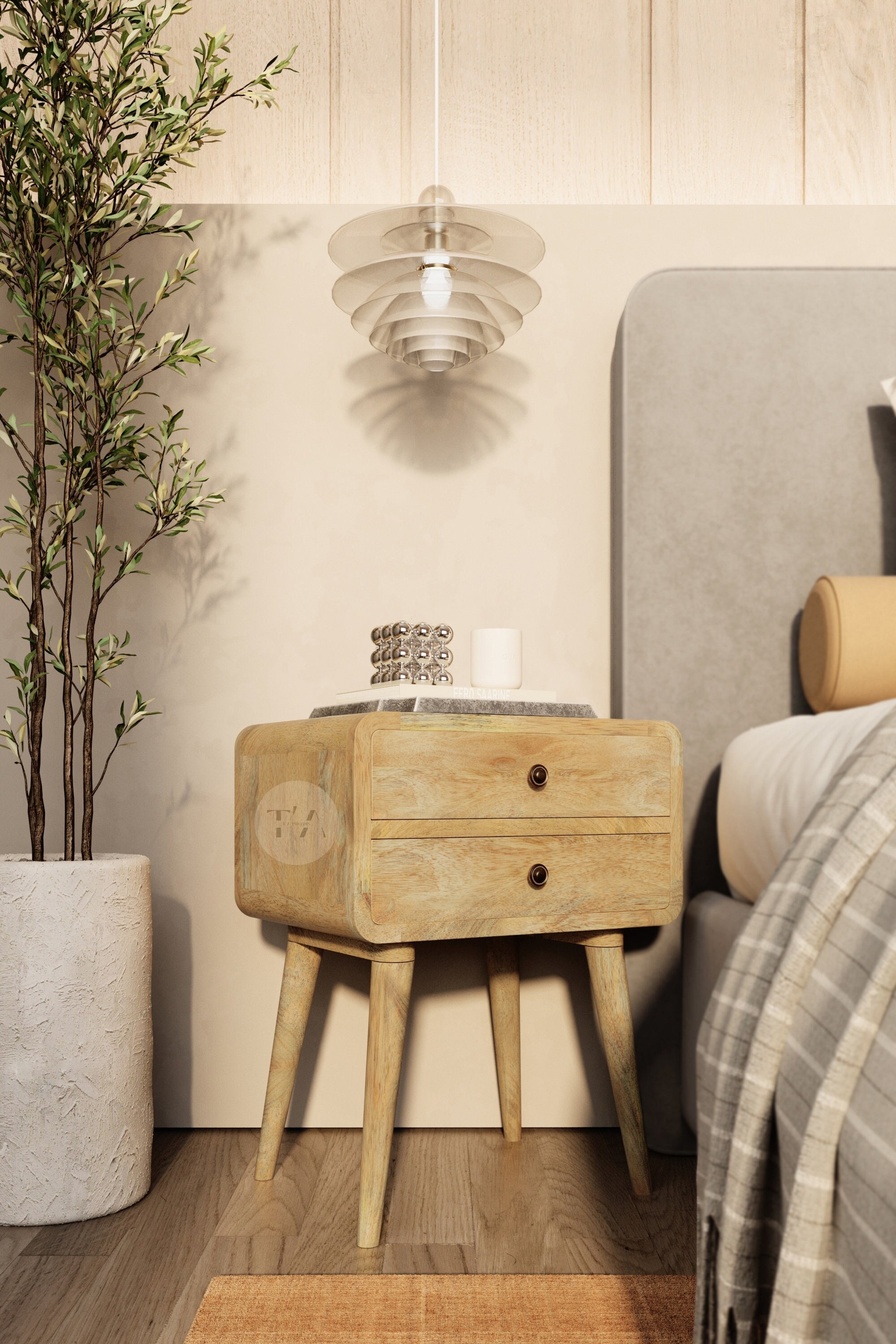Narrow Wooden Bedside Table with Drawers * Slim Curved Bedside Tabl...