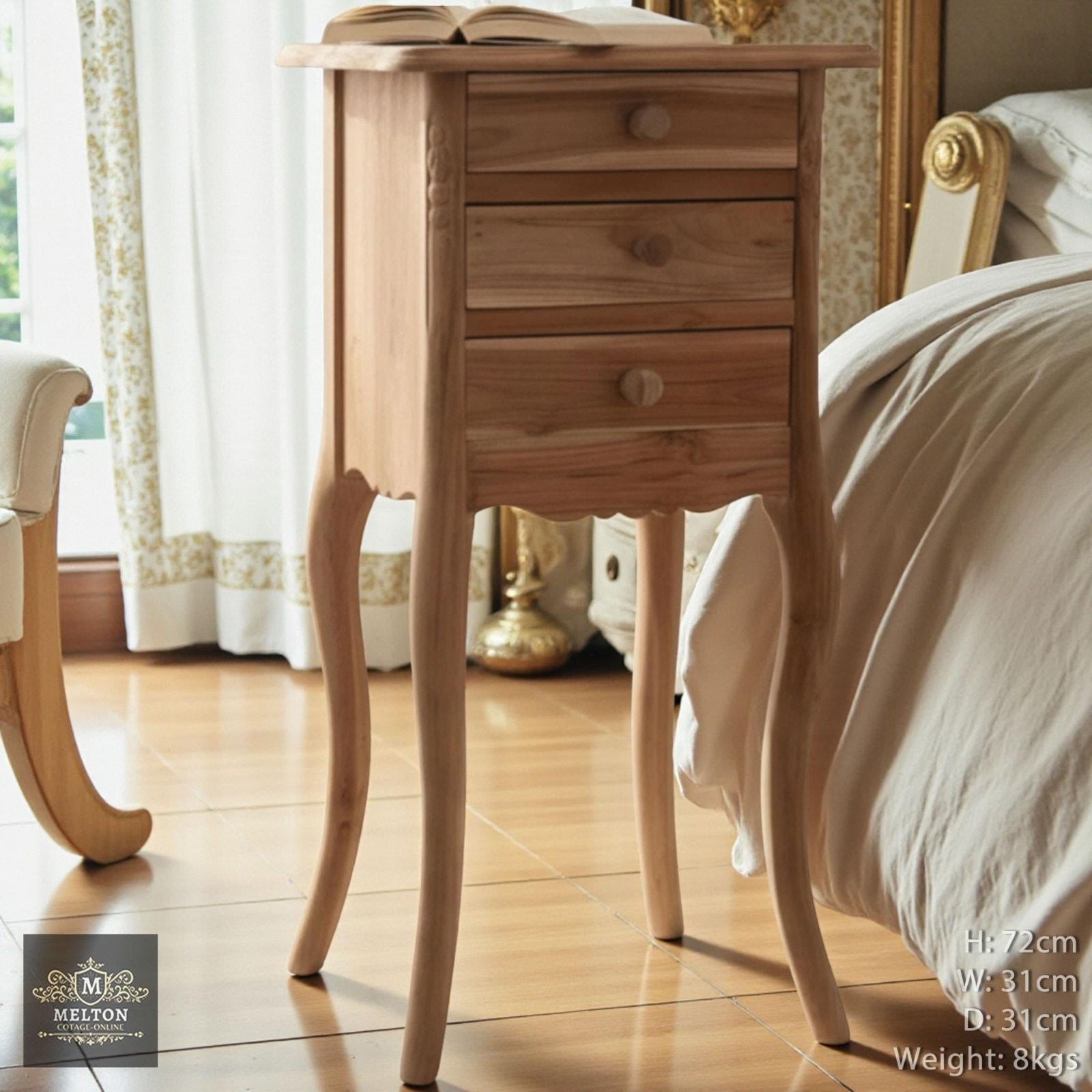 Bedside Occasional Table Wooden 3 Draw Square Solid Rustic Teak Woo...
