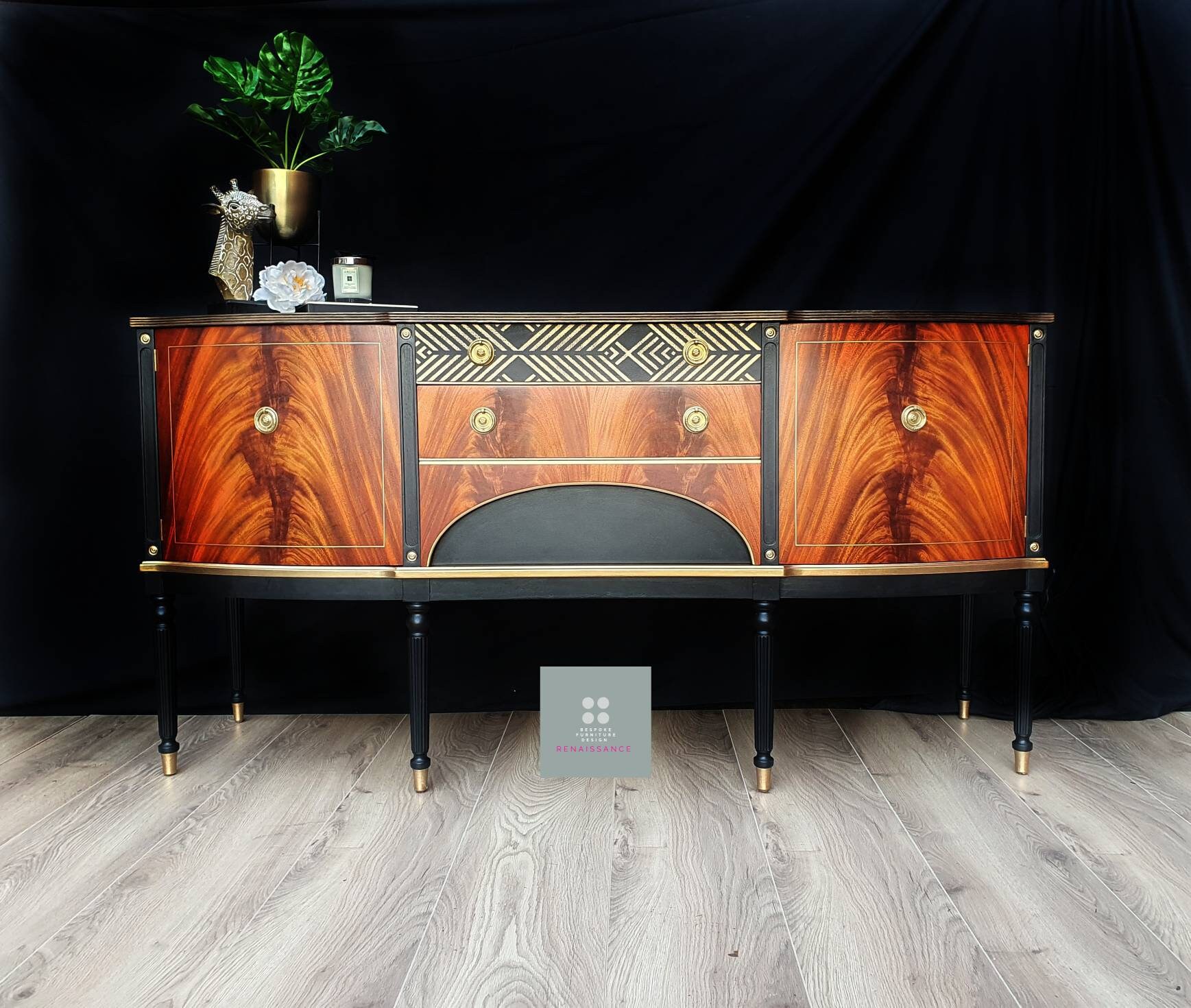 Black Gold Wood Vintage Antique strongbow sideboard occasional tabl...