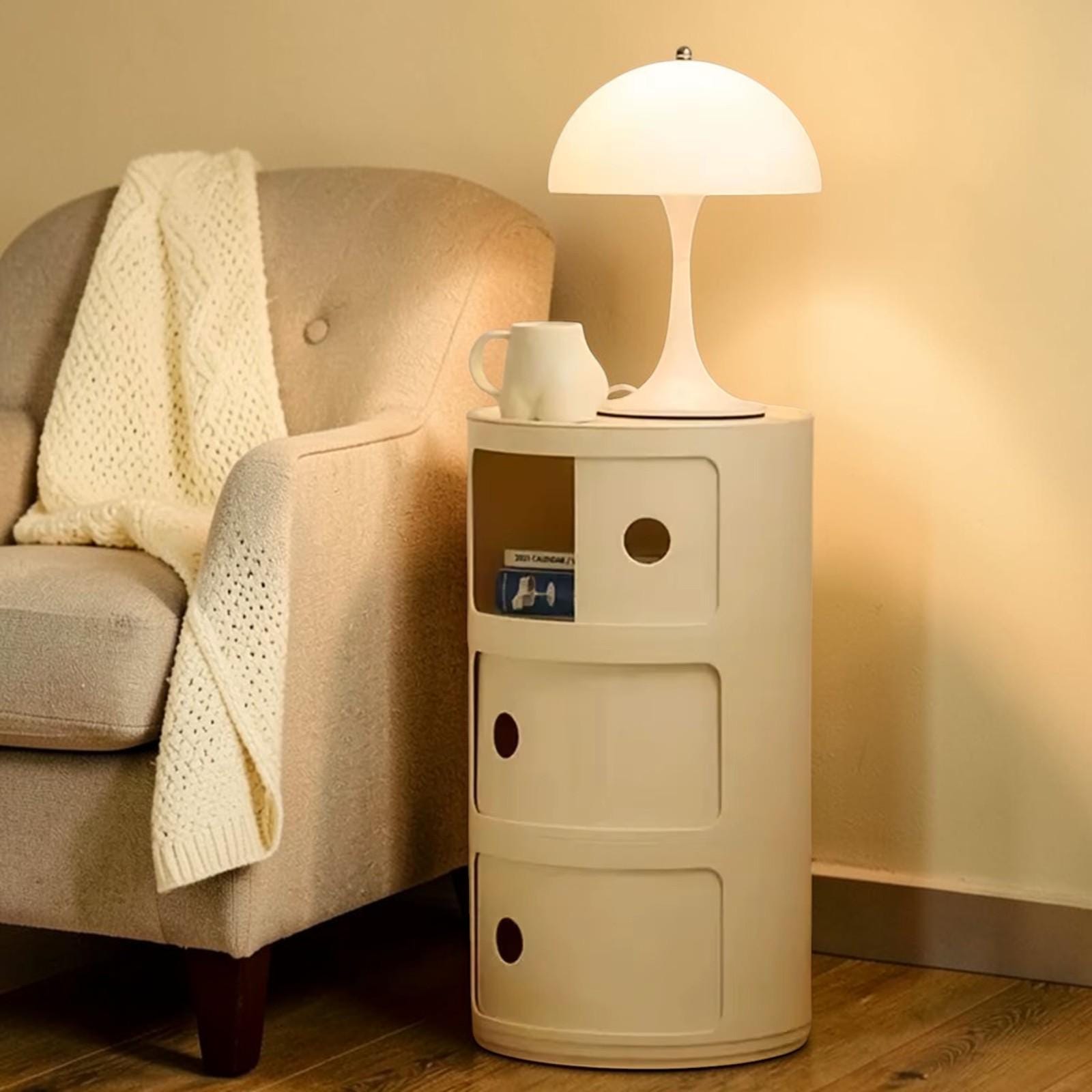 Round Bedside Table with 3 Drawers Modern Nightstand Storage Cabine...