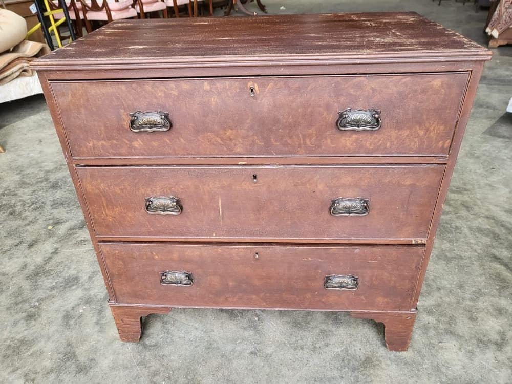 Antique Victorian small chest of drawers bracket feet 3 drawers brass handles Size (cm) 92 w x 50 d ...