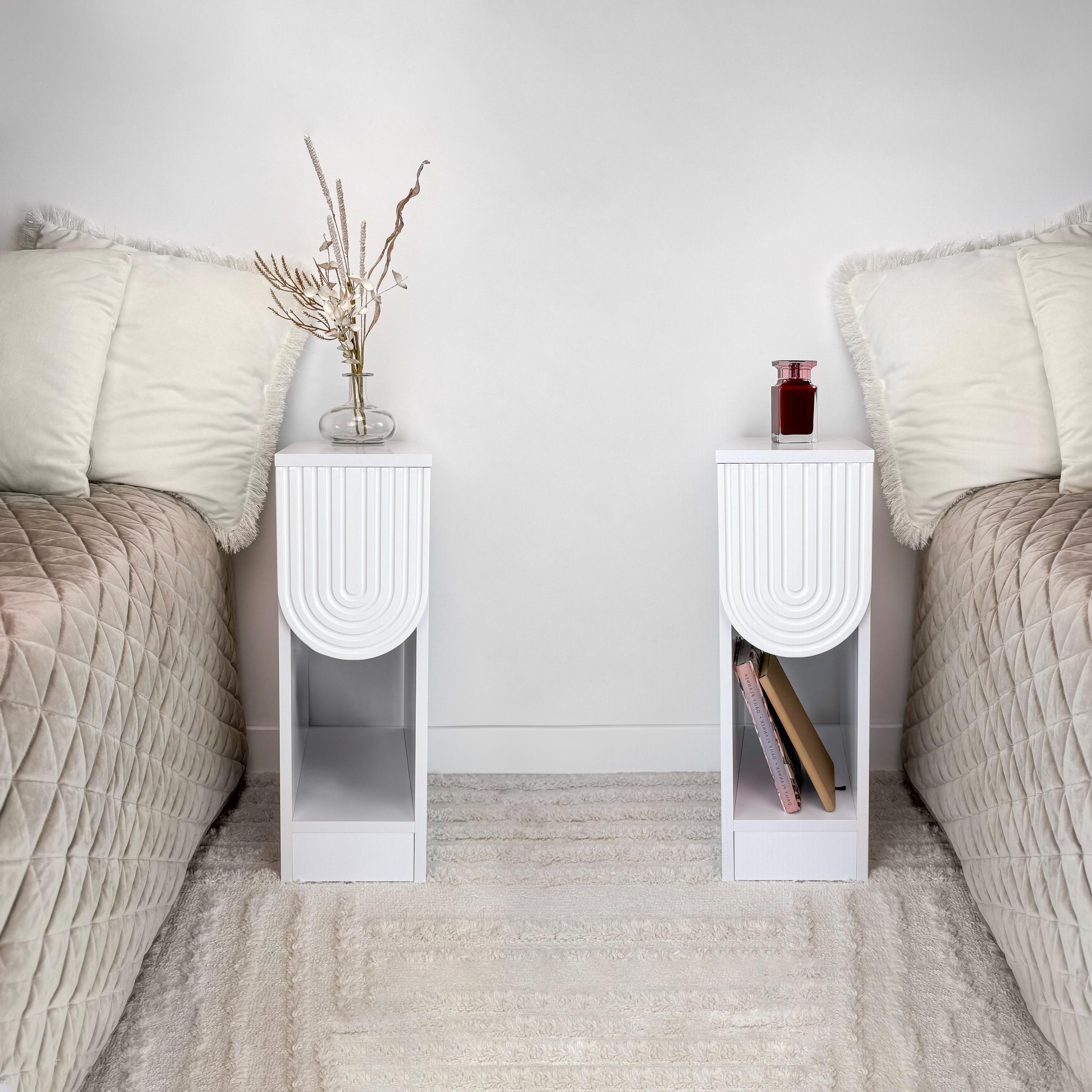 Set of 2 bedside tables Small white nightstands with storage Pair o...