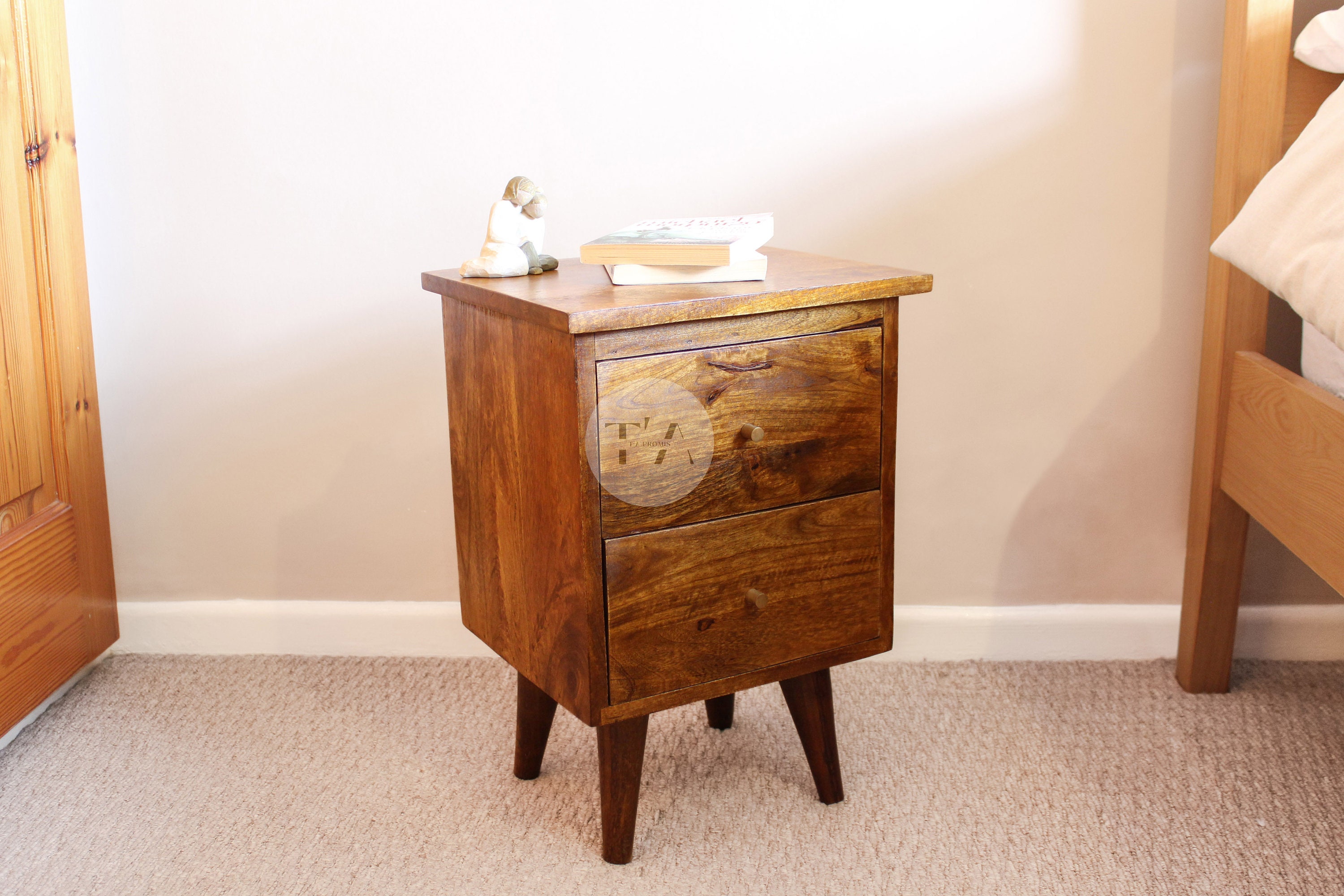 Small Wooden Bedside Table with 2 Drawers * Contemporary Bedside Ta...