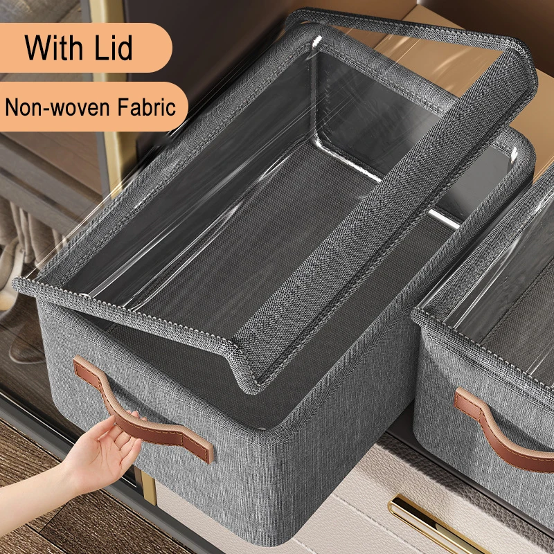 Folding Clothes Storage Box with Lid Multi-functional Wardrobe Storage Box for Underwear Sweater Hom...