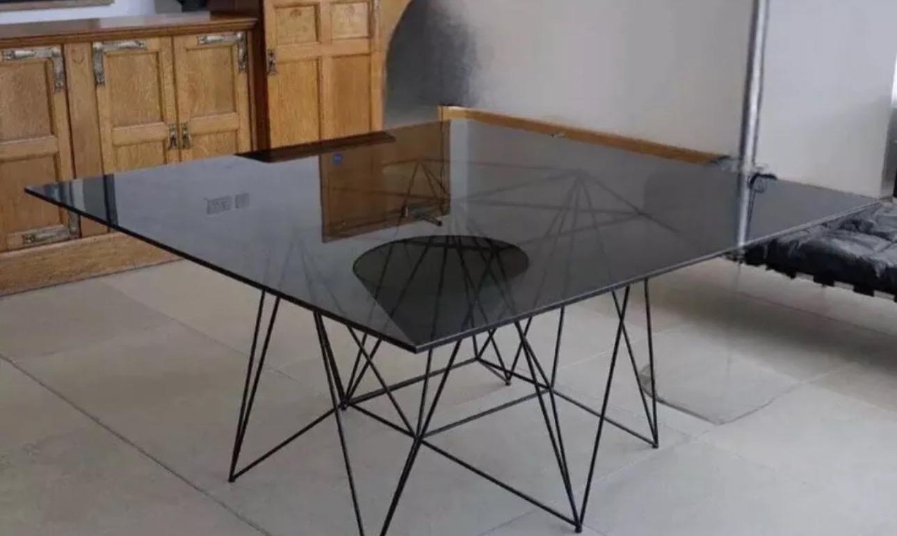 Superb Vintage Mid Century Industrial Italian Designer Style Smoked Glass Dining Table. In the style...