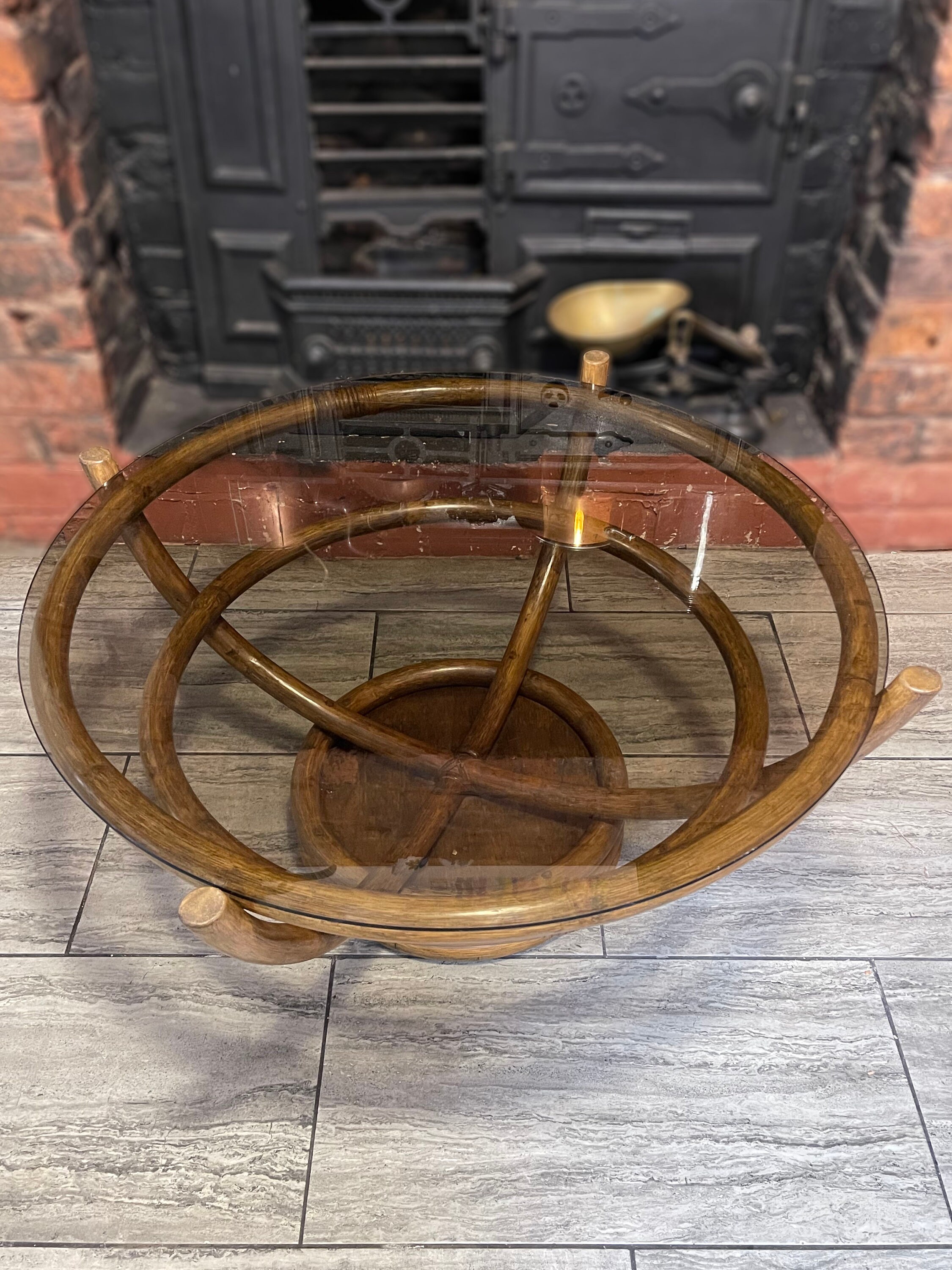 • Stunning Mid Century Original 1970's Round Bamboo Table with Smoked...