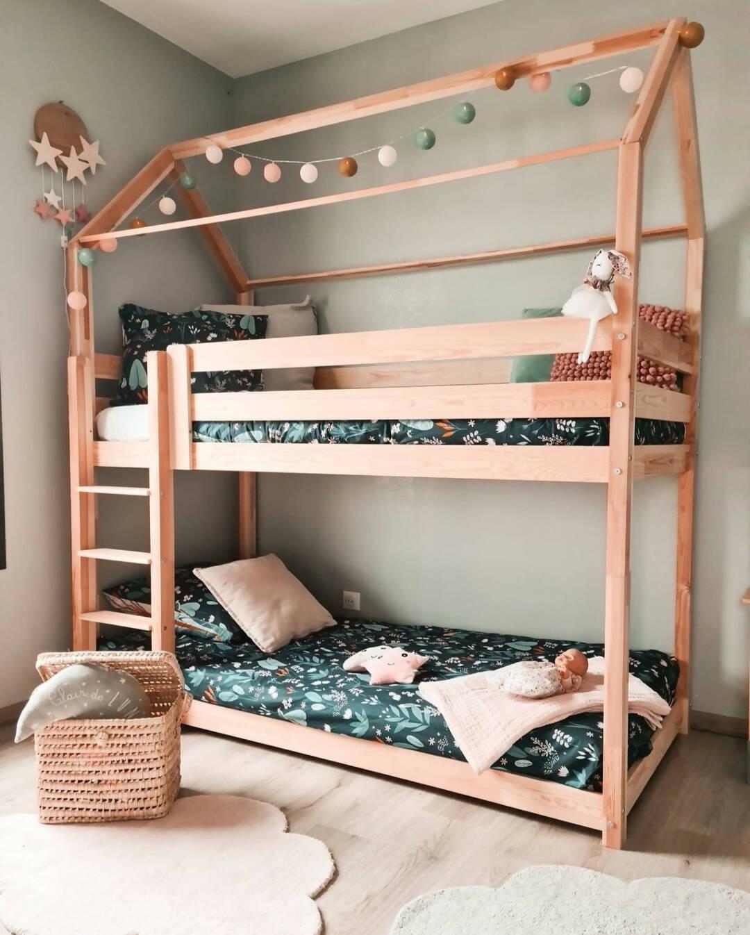 Bunk beds for children, Montessori house bed, solid handmade bed fo...