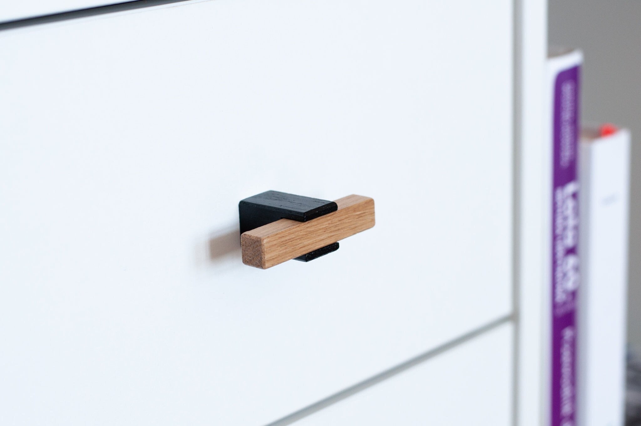 "Wooden furniture handle: - solid oak wood - 2 elements are painted black, one is coated with t...