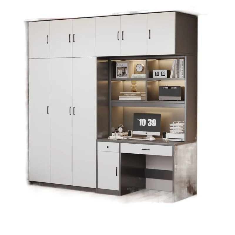 Solid wood wardrobe, desk integrated wardrobe, household bedroom st...