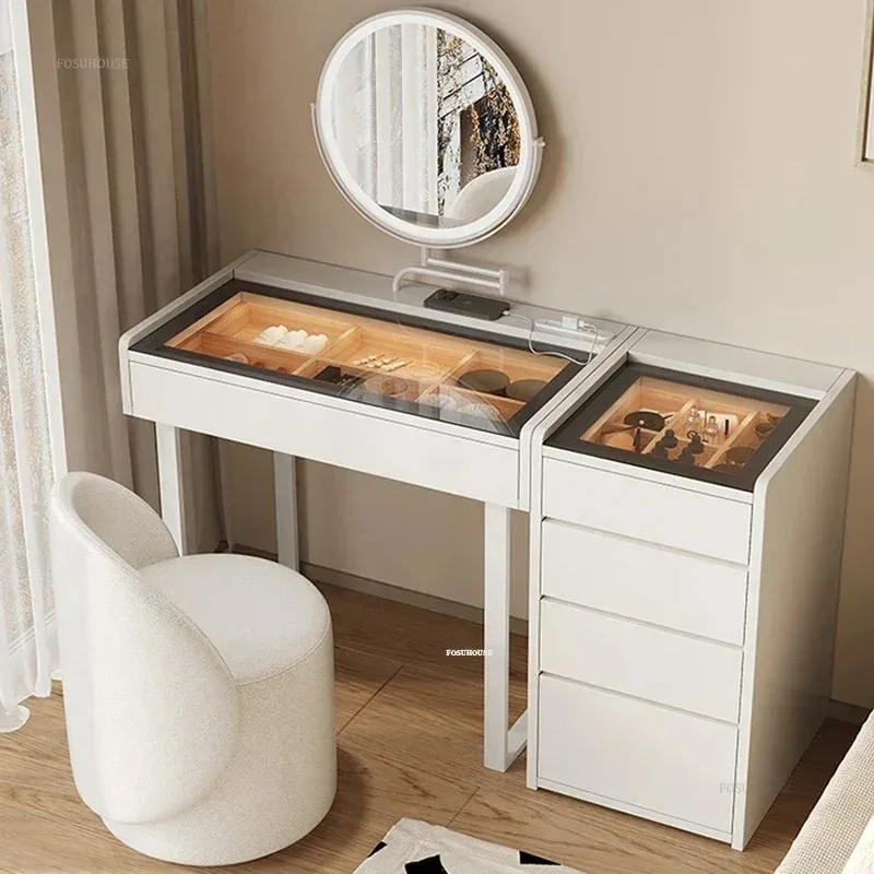 Bedroom Dressing Table Creative Vanity Desk Cupboard Integrated Makeup Table with Smart Light Nordic...