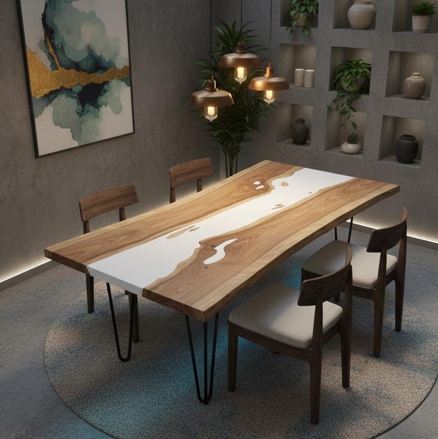 Luxury Live Edge River Dining Table - Solid Wood Table with White R...