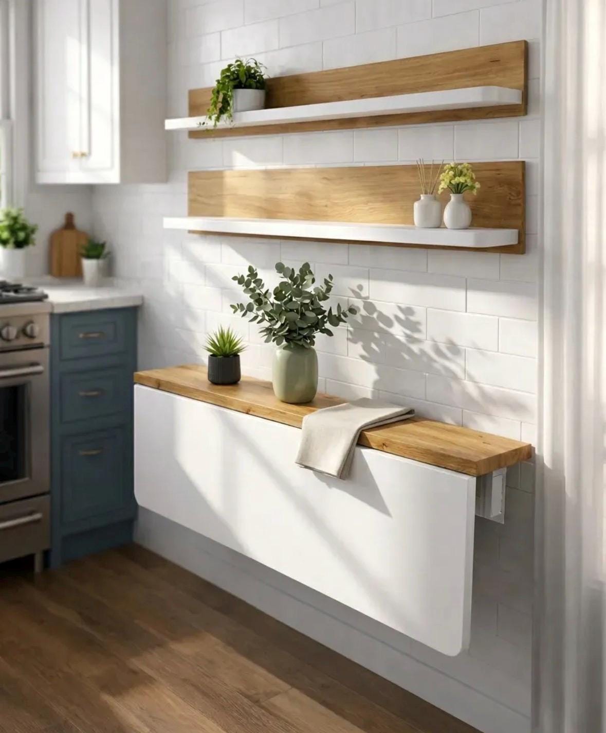 Wall Mounted Folding Kitchen Table, Folding Dining Table, Small Spa...