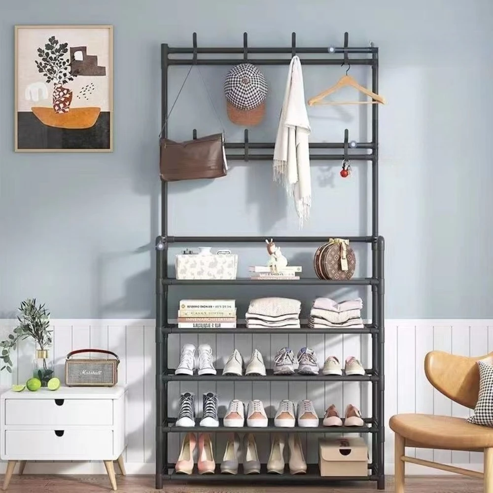 Multi Layer Clothes Hook Shoe Rack Floor Standing Storage Rack Entr...