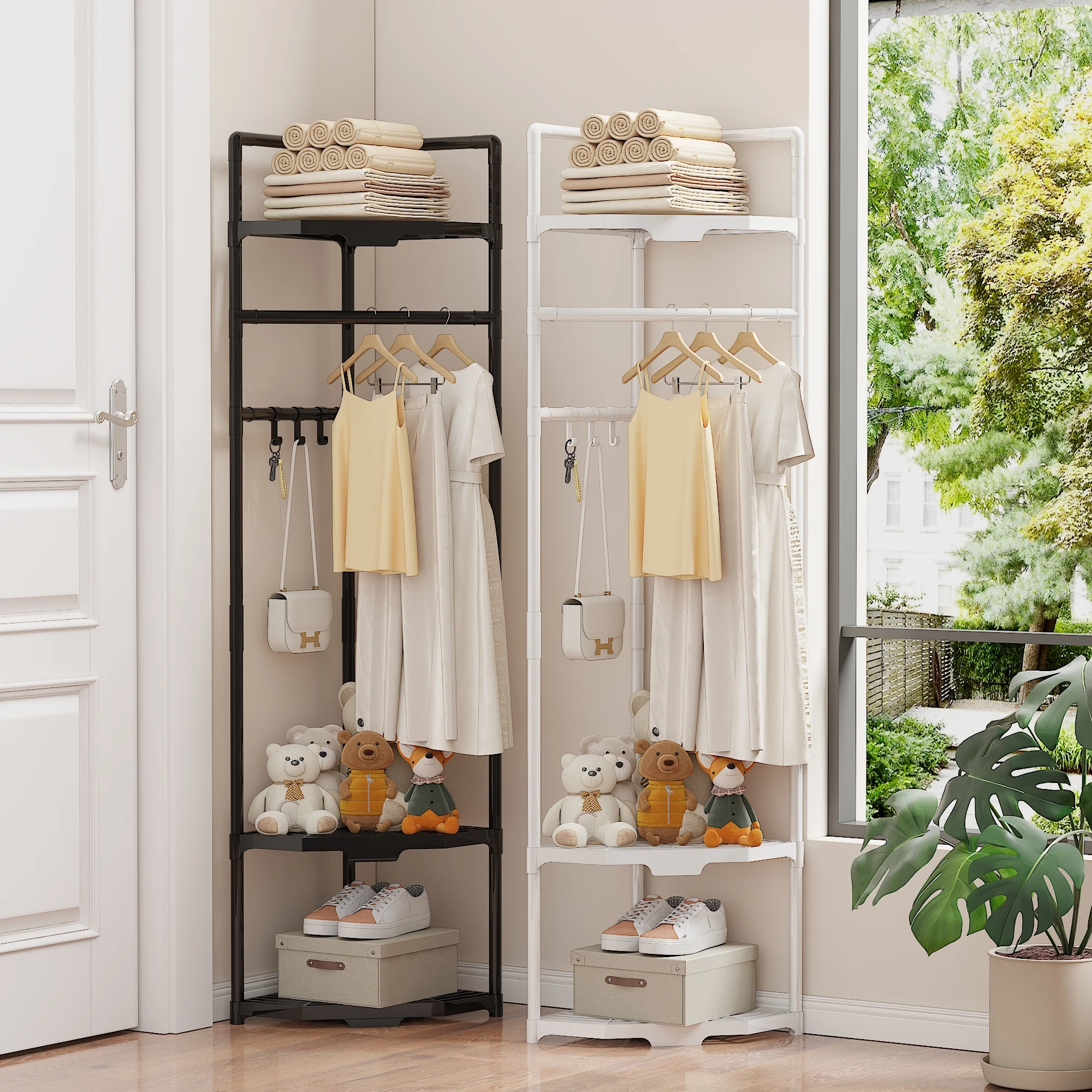 1 Multi-Layer Metal Coat Rack with Hooks/Standing Coat Rack, Special Corner Storage Rack, Multifunct...