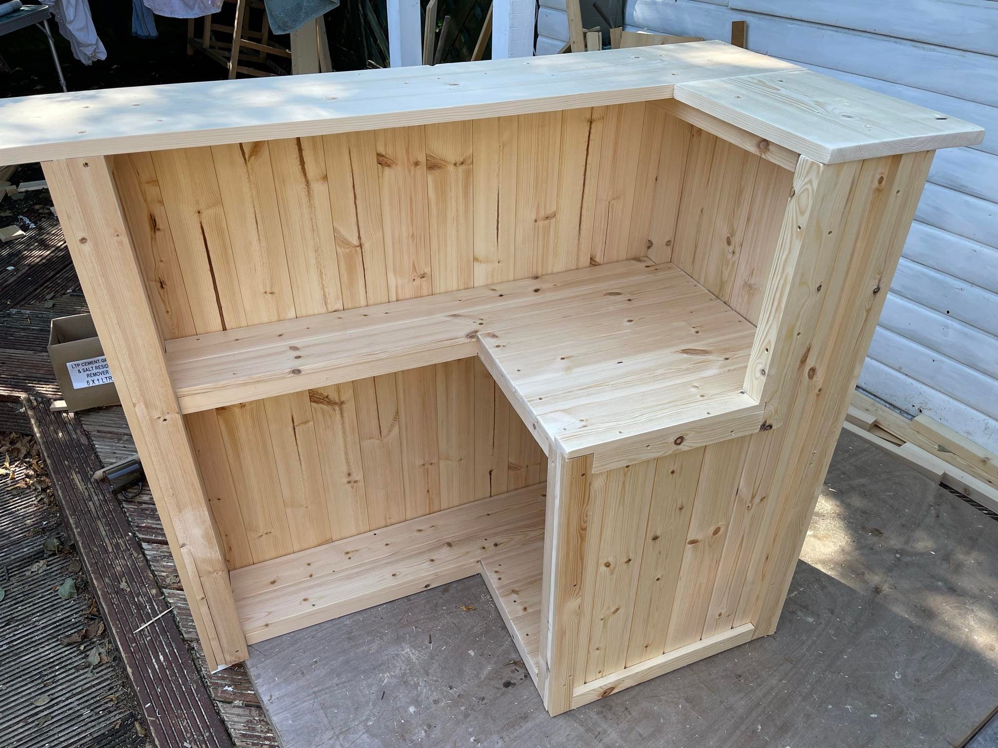 Wooden home bar, L shape bar, man cave bar, summerhouse bar, garden bar, home bar, outdoor bar A ver...