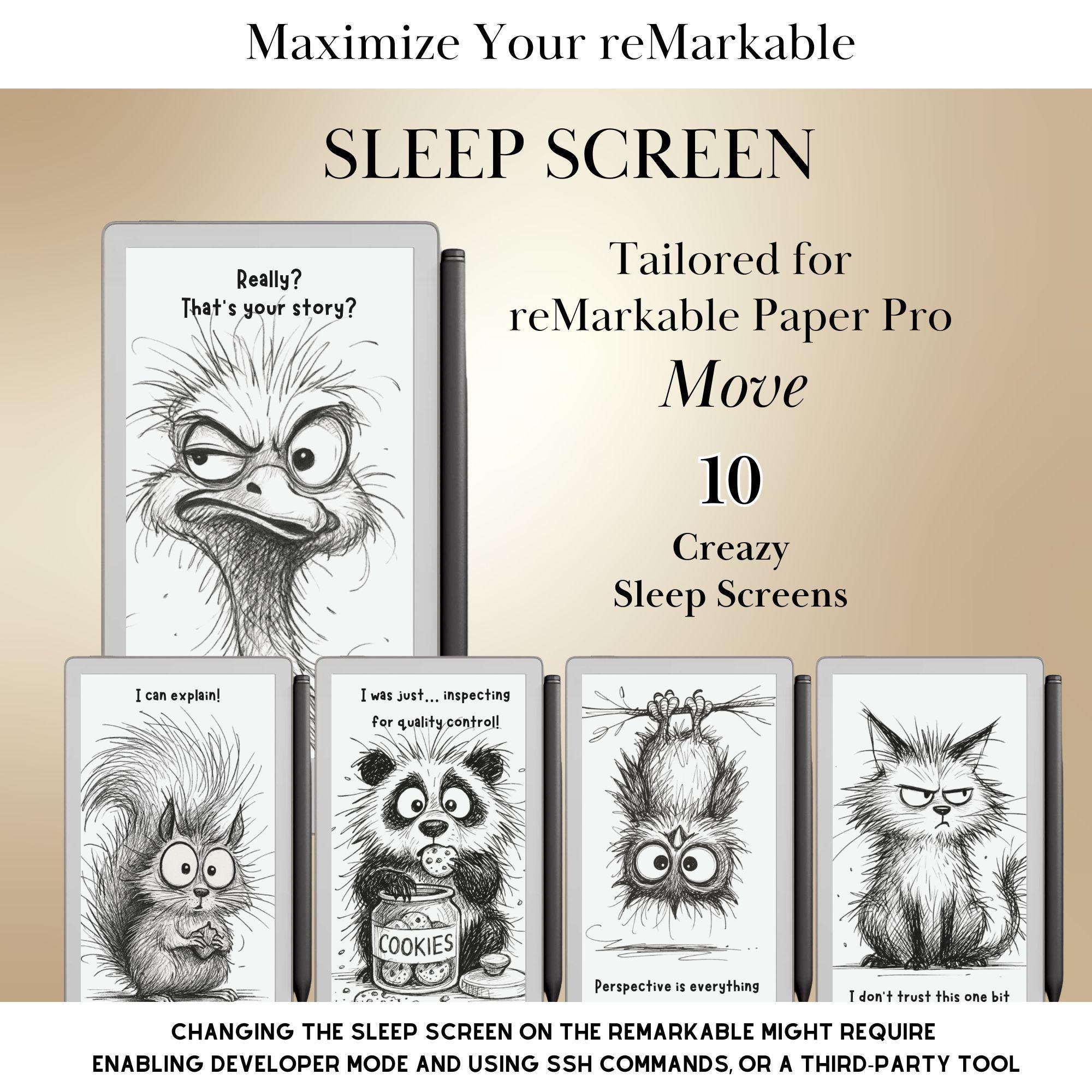 Fun Animal Sleep Screen Bundle for reMarkable paper Pro Move Templa...