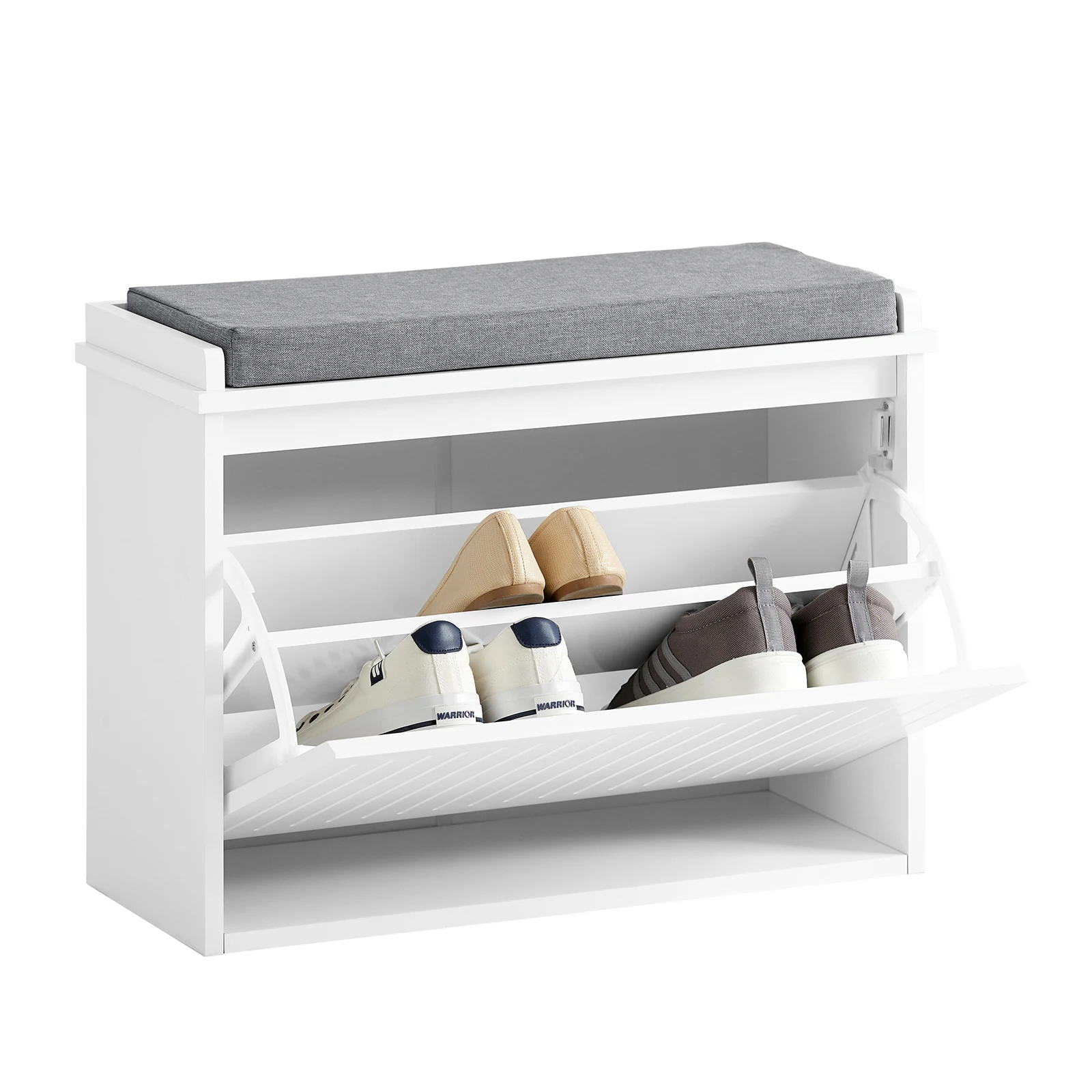 SoBuy FSR98-W Shoe Storage Bench with Cushion Shoe Rack & Cabinet with Flip Drawers 150kg Load C...