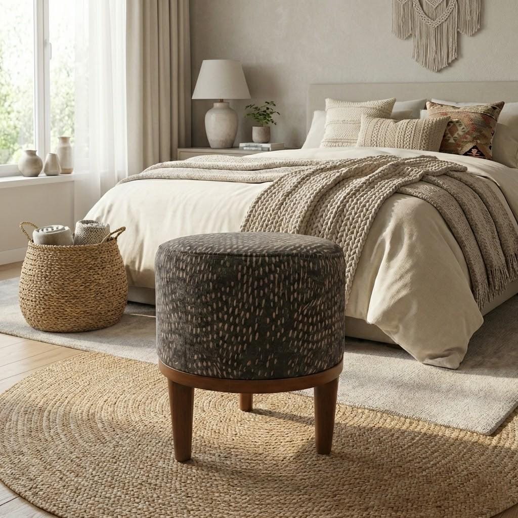 "Gothic footstool, Handmade pouf stool, Modern hallway seat, Round shoe bench, Designer furnitu...