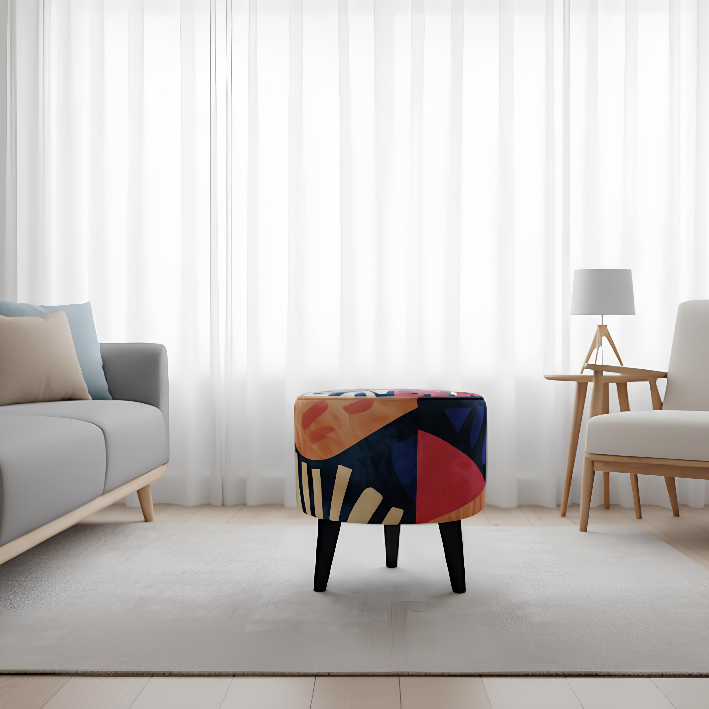 "Abstract footstool, Orange hall seating, Entryway organizer, Round end table, Vanity pouf stoo...