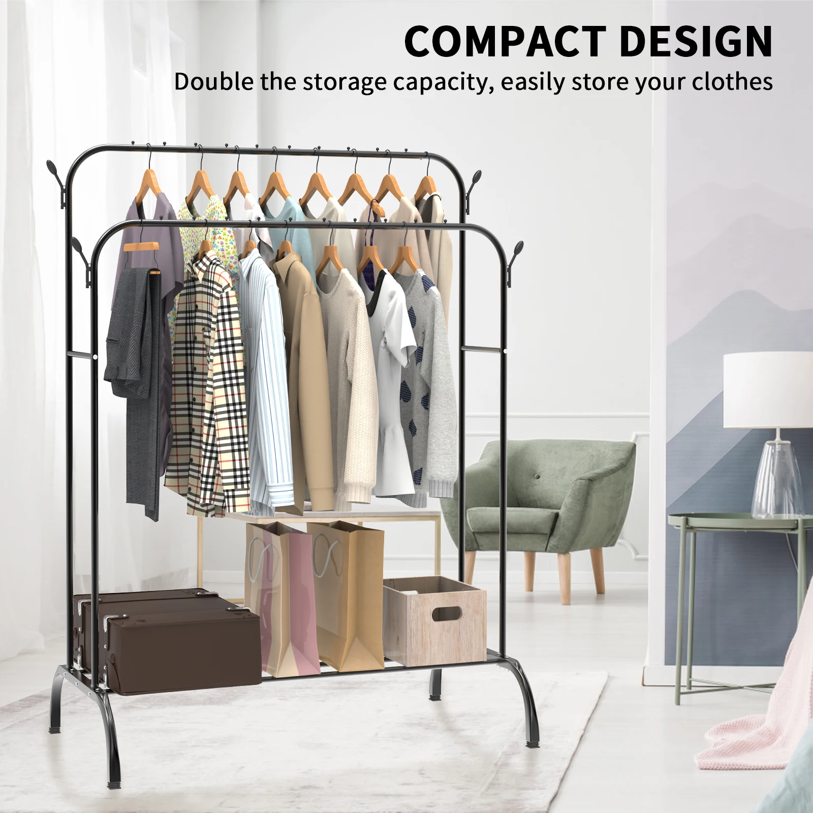 Double Rail Clothes Rack Standing Clothes Rail Shoes Rack Storage S...