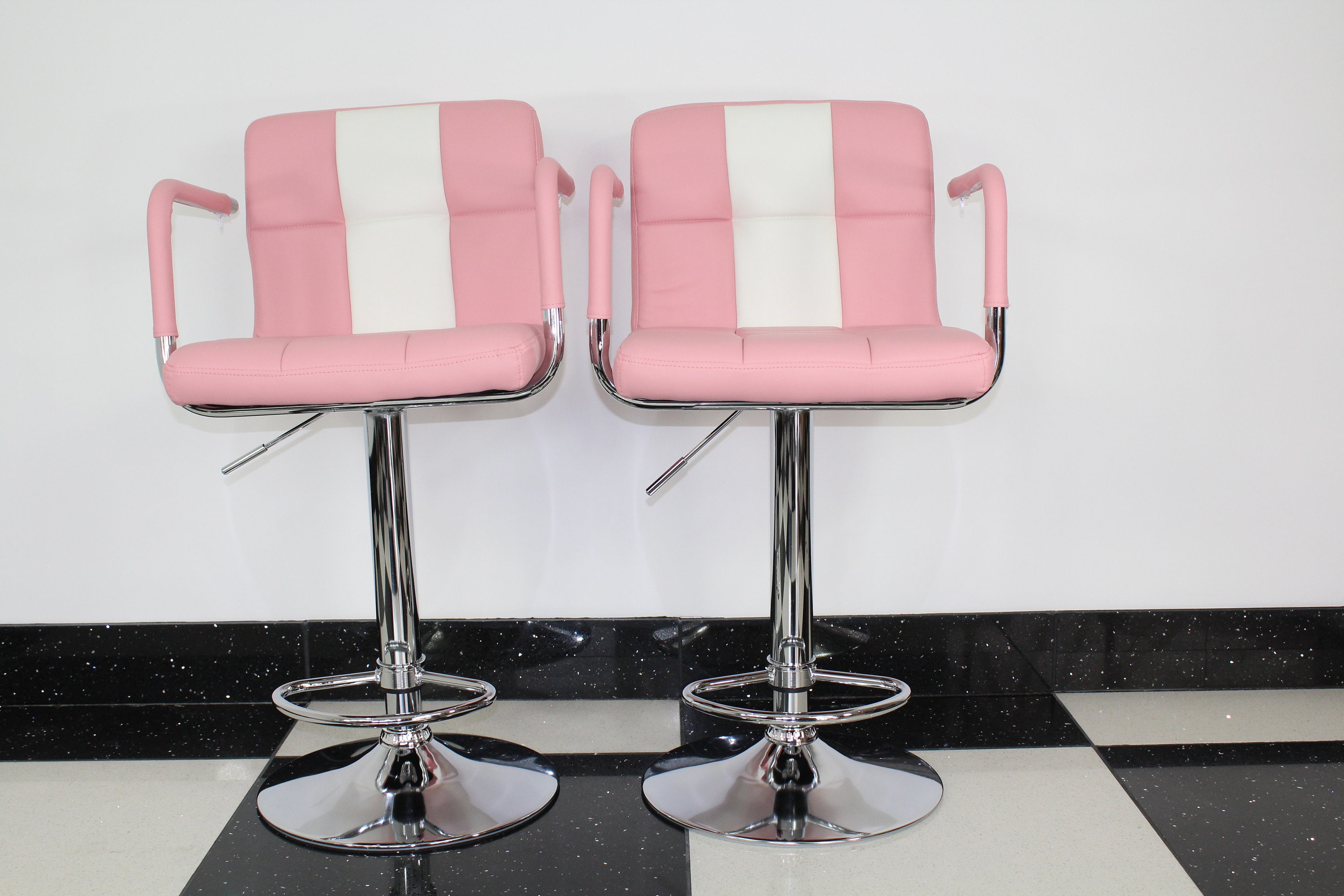 American 50s Diner Furniture Retro Style 2 Pink Stools With Arms