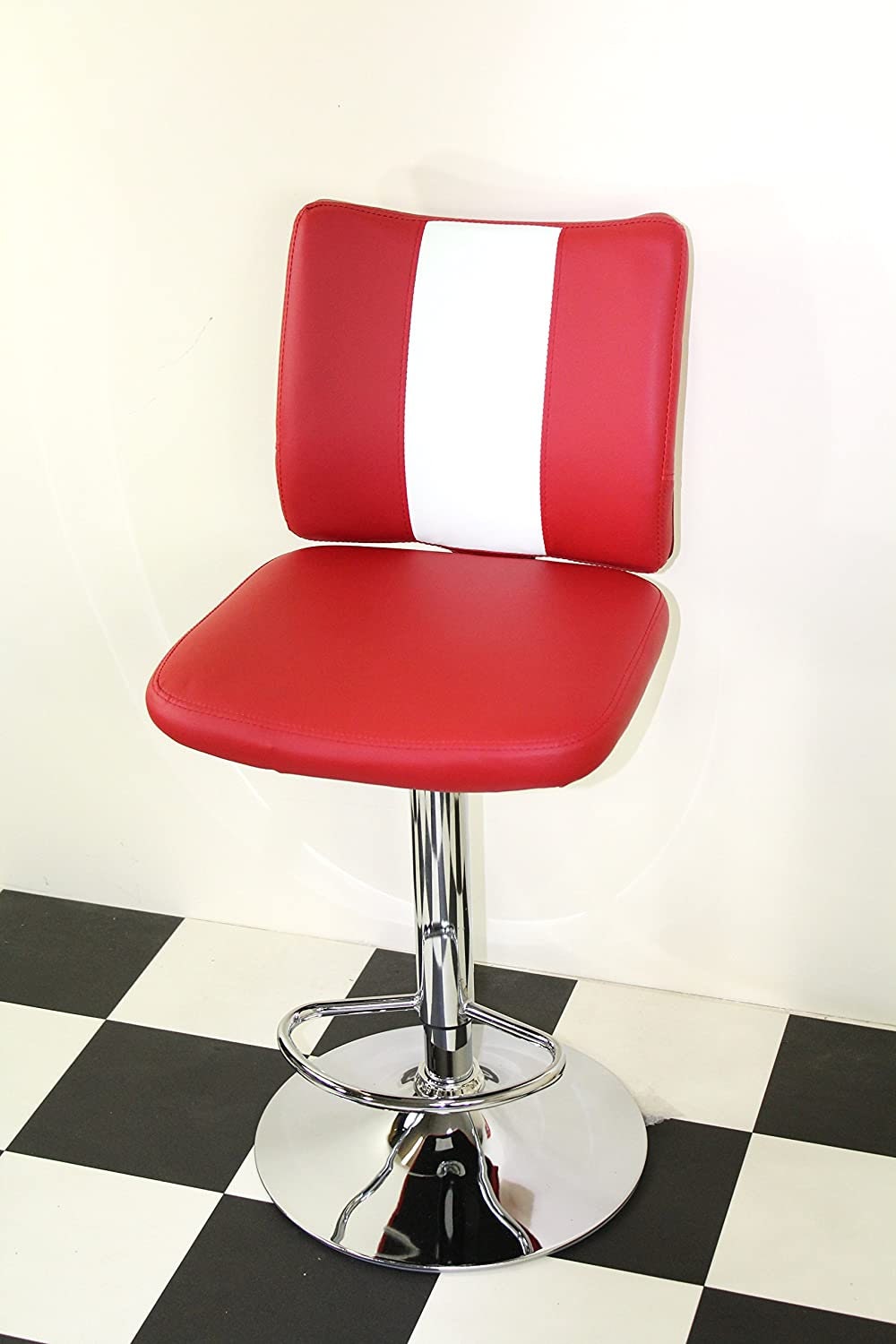 American 50s Diner Furniture Red Stool Retro-look faux leather soft stool in red and white with chro...