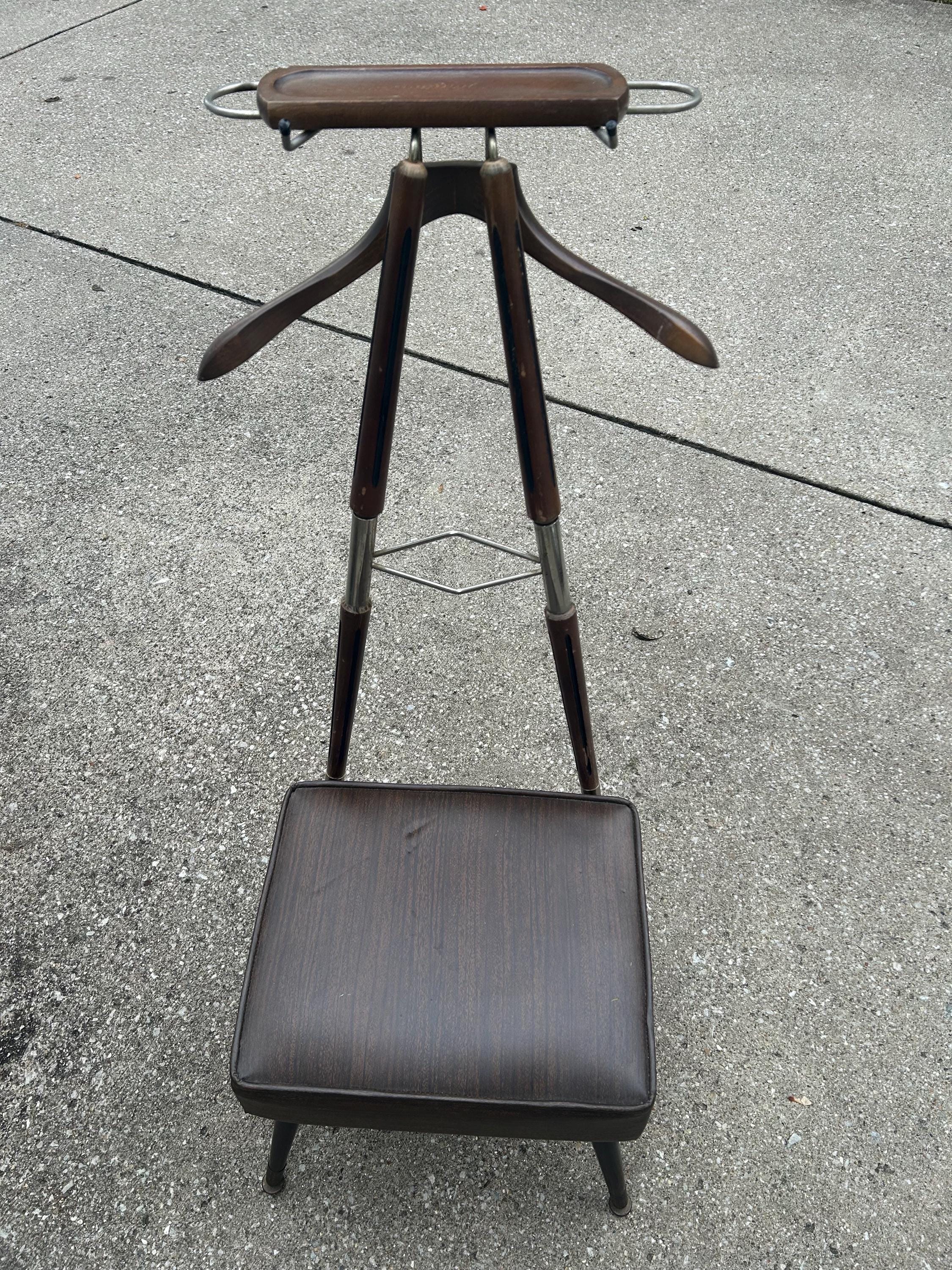 "Vintage Spiegel Butler Dressing Chair Valet with Faux Wood Vinyl Stool Seat Wood suit hanger &...