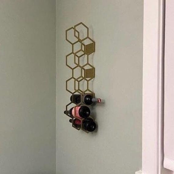Welcome to MonAtr4design Transform Your Walls with a Stunning Gold Honeycomb Wine Rack - Add a touch...
