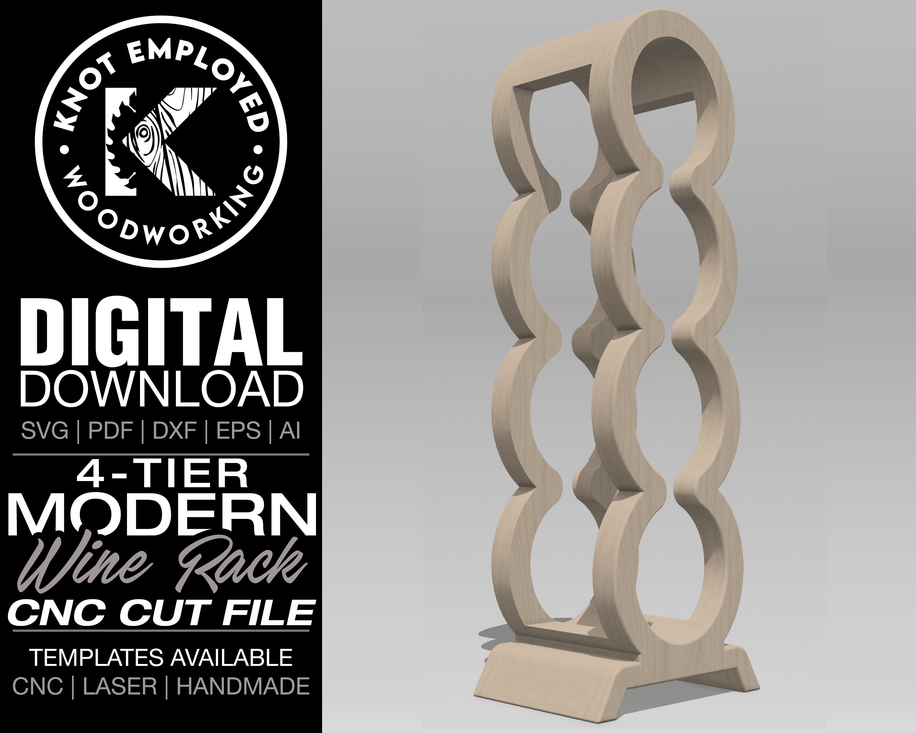 "Elevate your wine storage with this sleek and customizable 4-tier wooden wine rack! This CNC d...