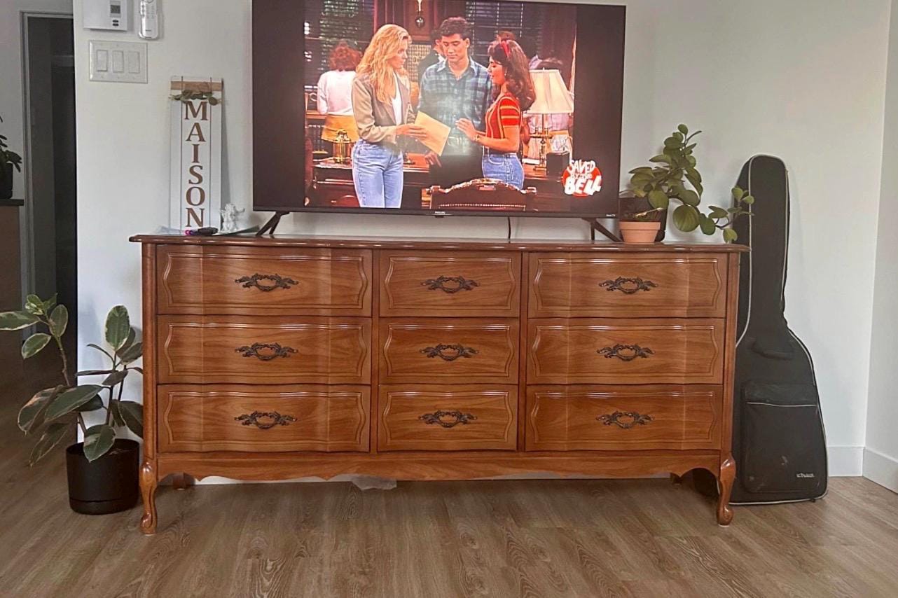 Vintage Furnitures French Provincial Style 6 serpentine drawers dresser with shaped mouldings. Hand ...