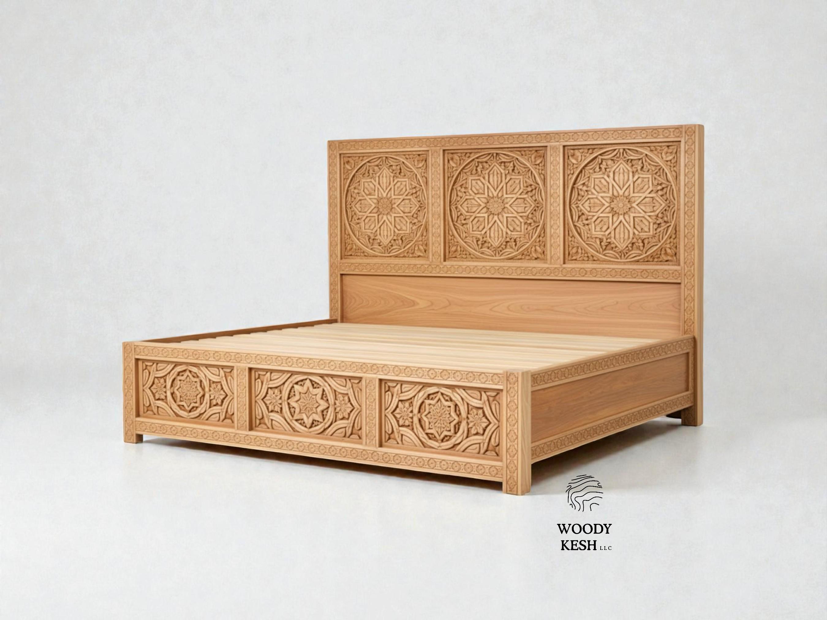 Natural Handmade Moroccan Cedar Wood Bed Frame,King Queen Full,Carv...