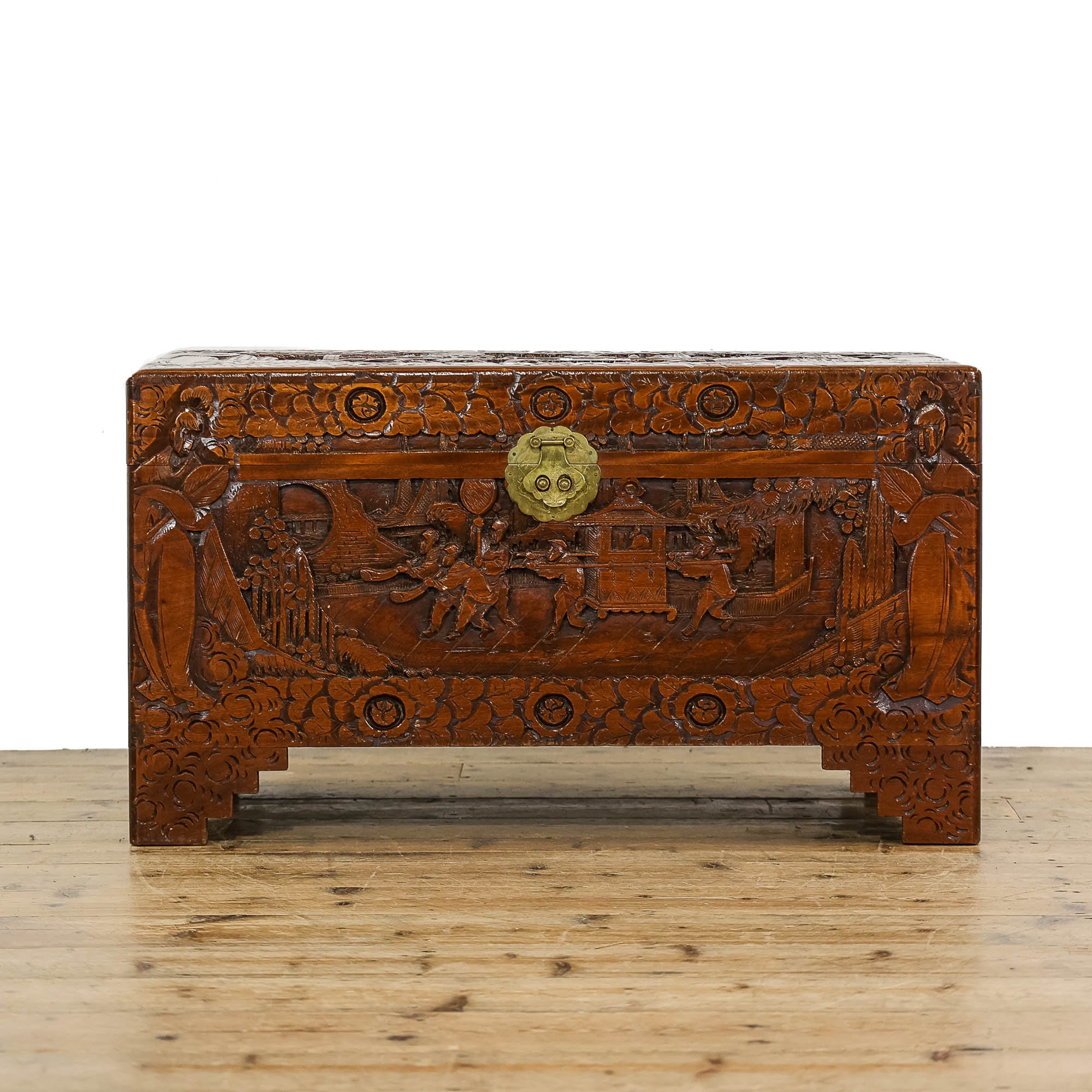 Antique Early 20th Century Oriental Carved Camphor Wood Trunk | Ant...