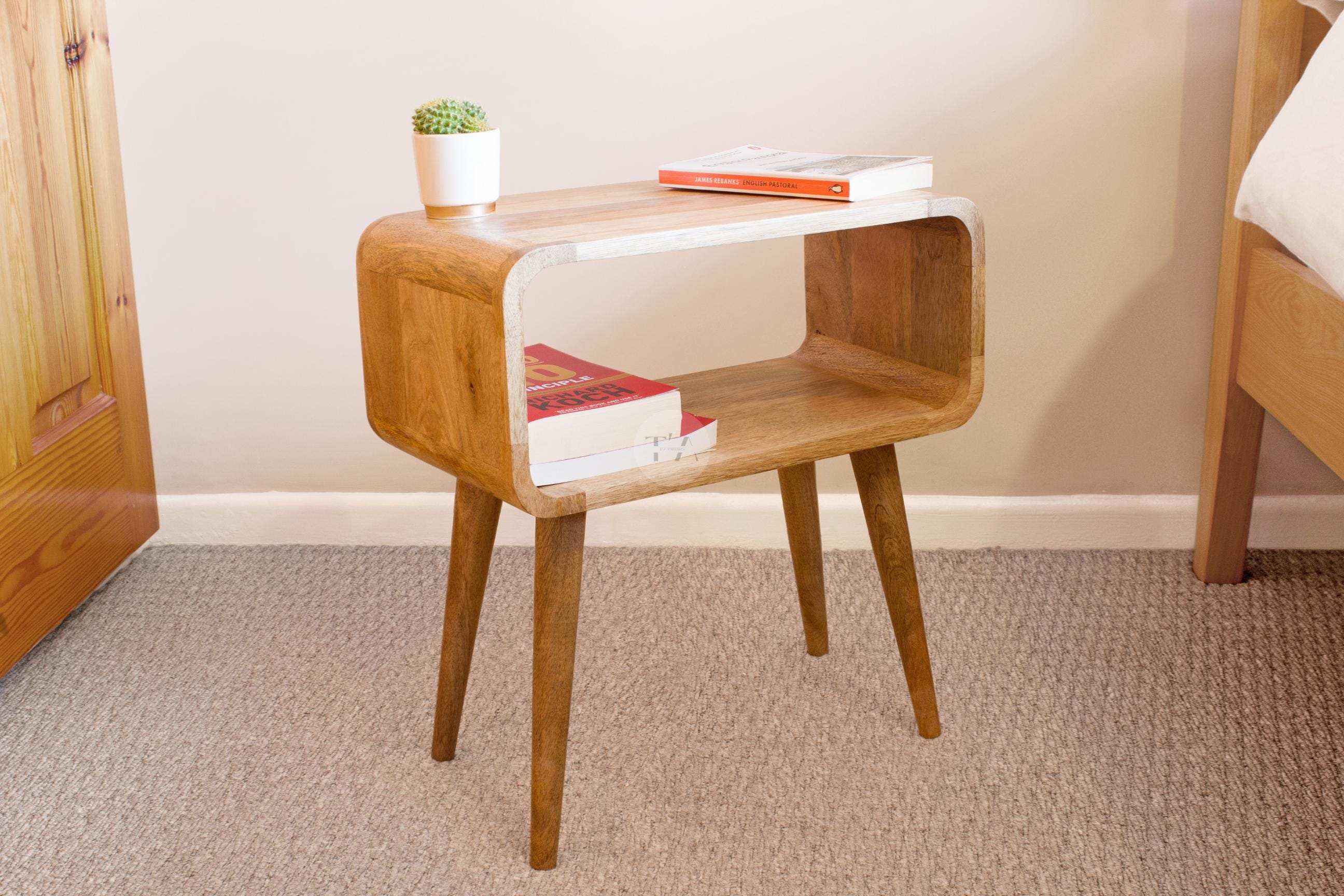 Open Bedside Table with Shelf * Curved Bedside Table Wood * Bedside...