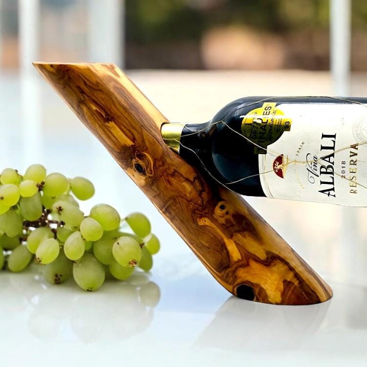 Handcrafted Olive Wood Wine Bottle Holder: Elegant Kitchen & Ba...