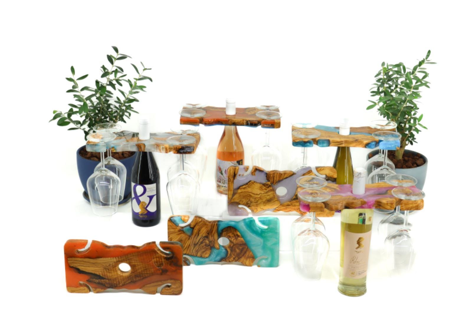 Olive Wood Epoxy Wine Holder - Rustic Holy Land Wood Kitchen DecorO...
