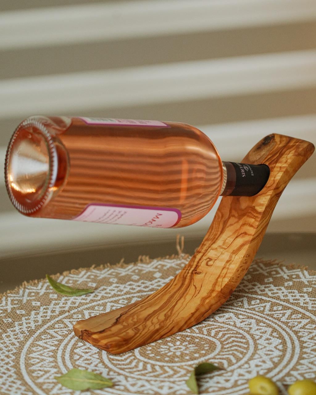 Handcrafted Olive Wood Wine Bottle Holder: Rustic Kitchen Display