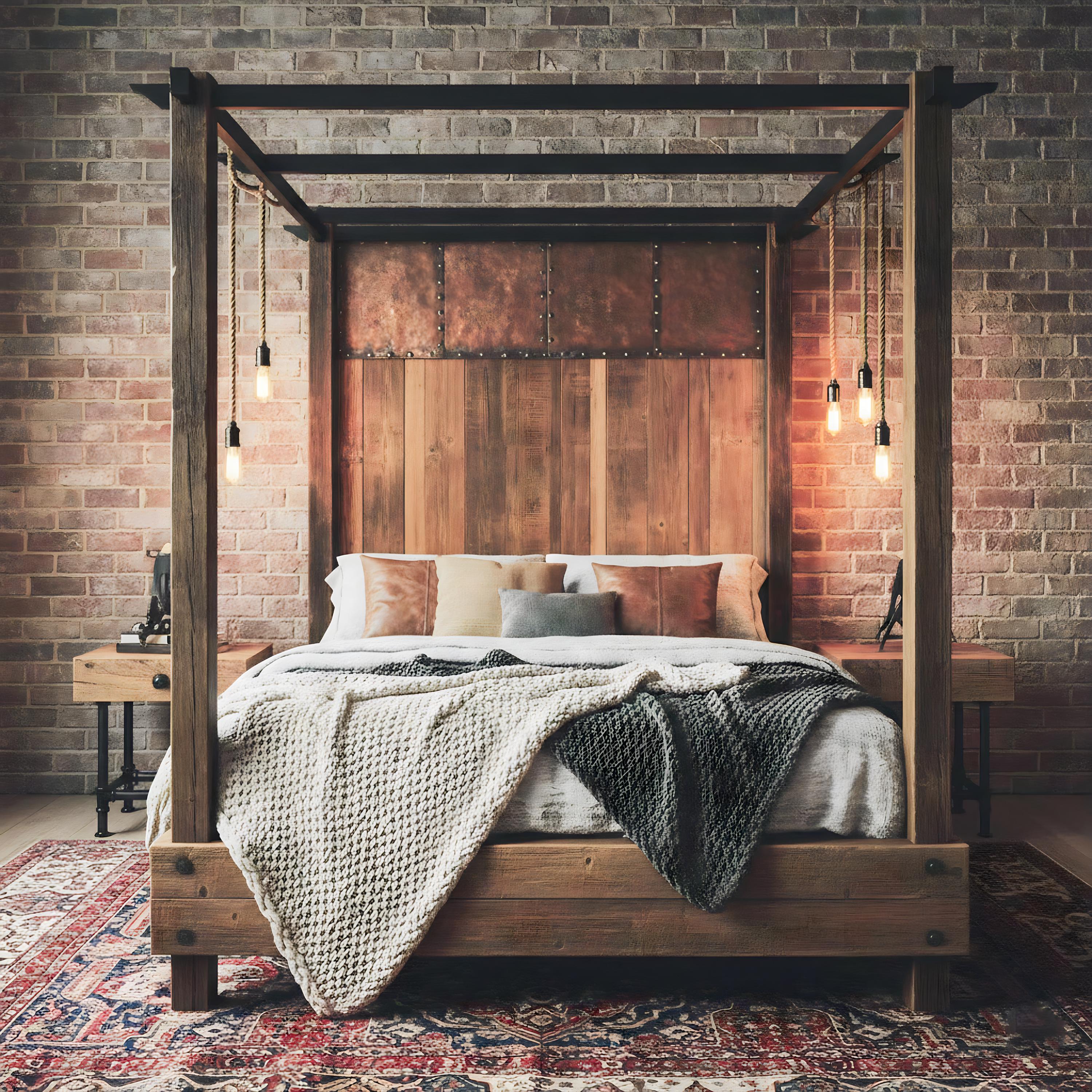 "Handmade Rustic Wood King And Queen Size Bed, Rustic Solid Bed, Bedroom Décor, Bed Head...