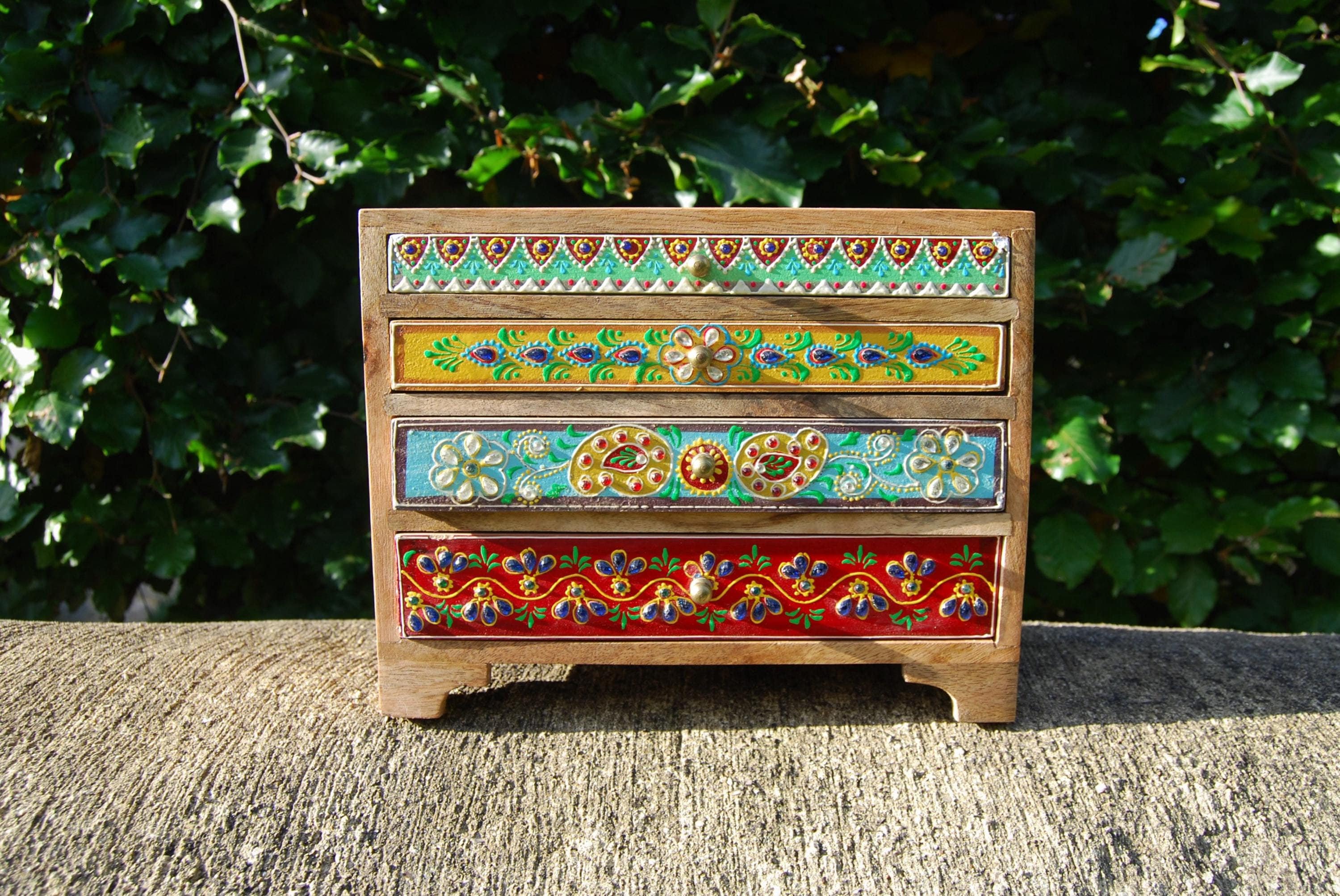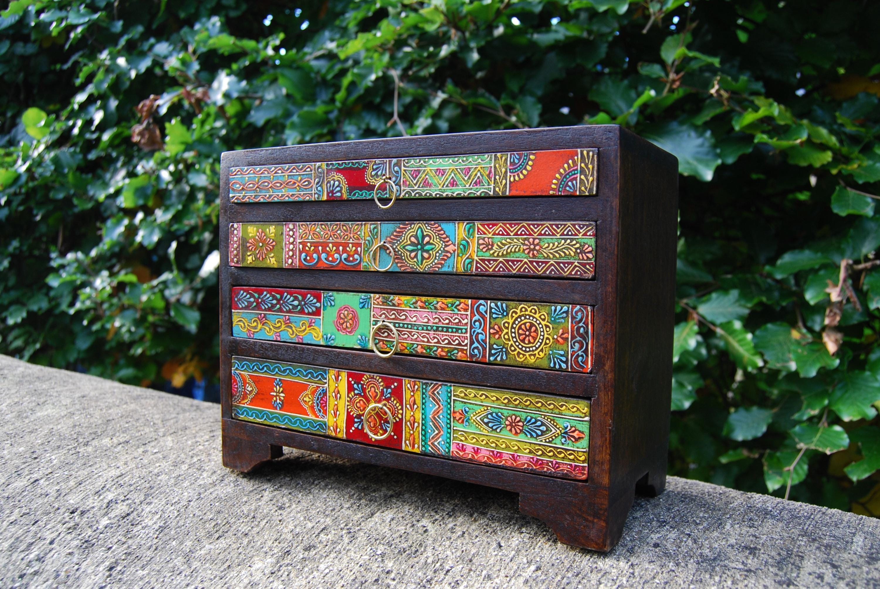 A gorgeous, hand painted, wooden mini drawer chest handcrafted from sustainable mango wood. This 4 d...