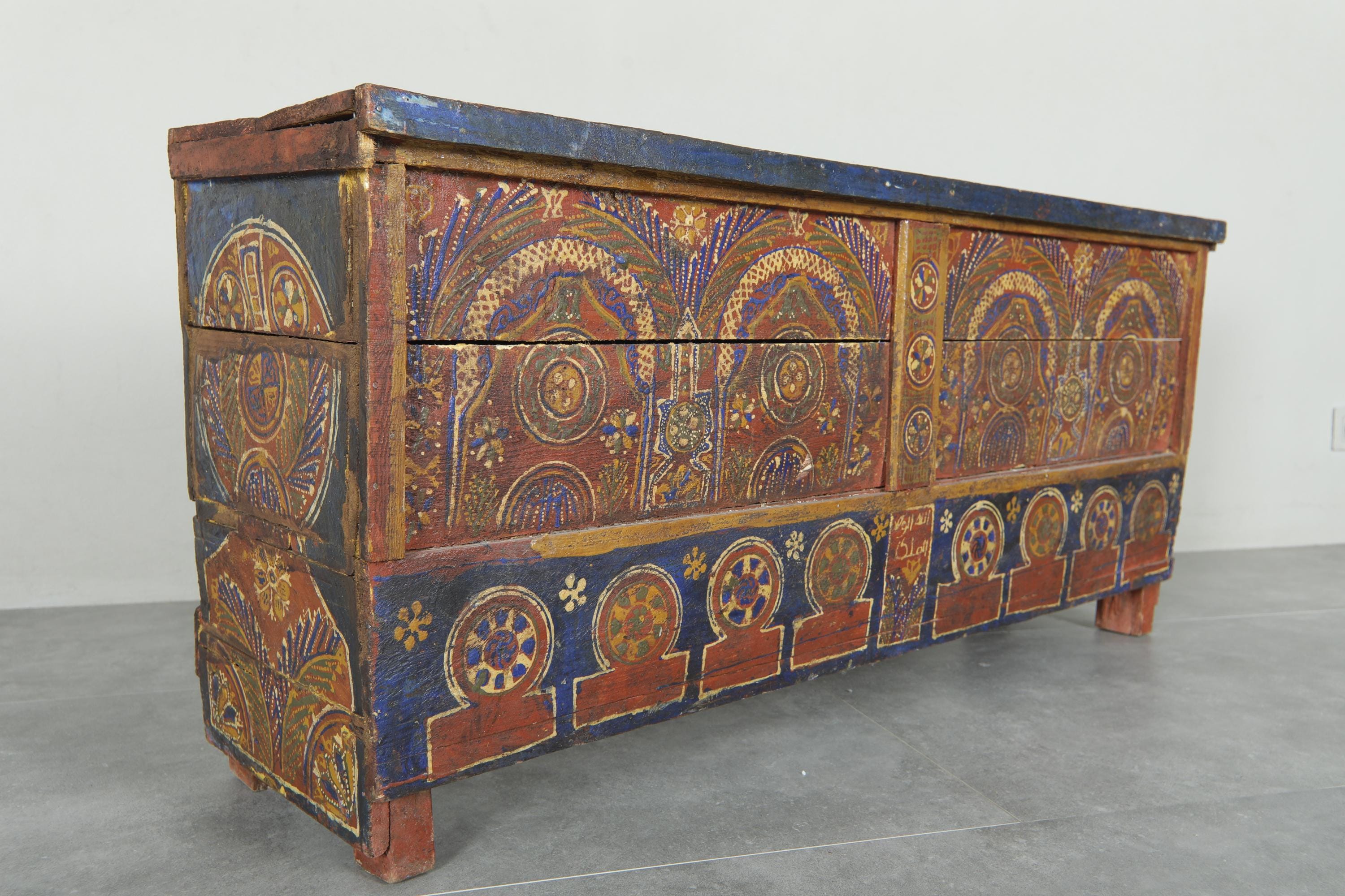 Moroccan wood chest - vintage moroccan chest - old chest - hand pai...