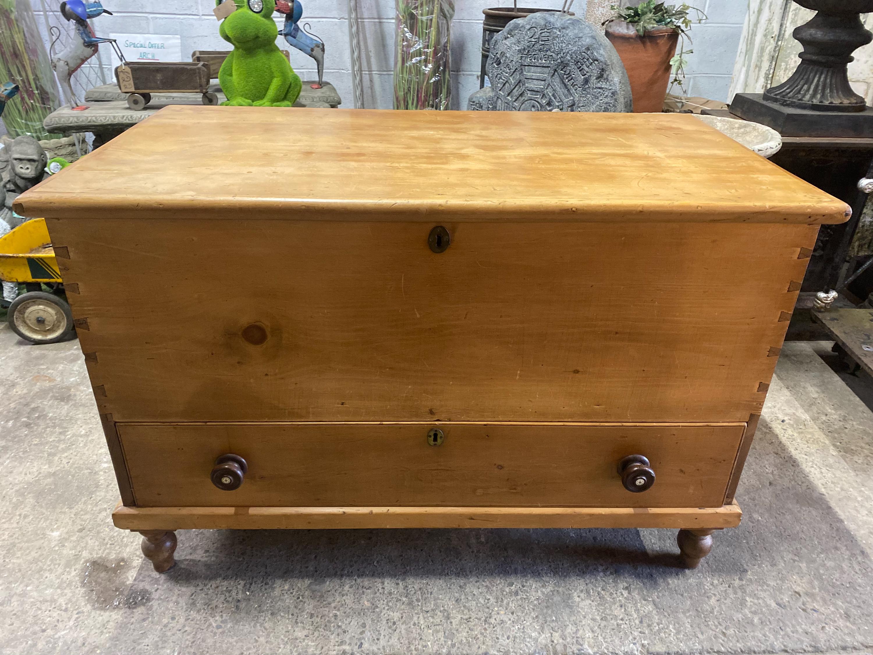 A beautiful antique wooden blanket chest, made out of what we believe to be pine. A solid item that ...