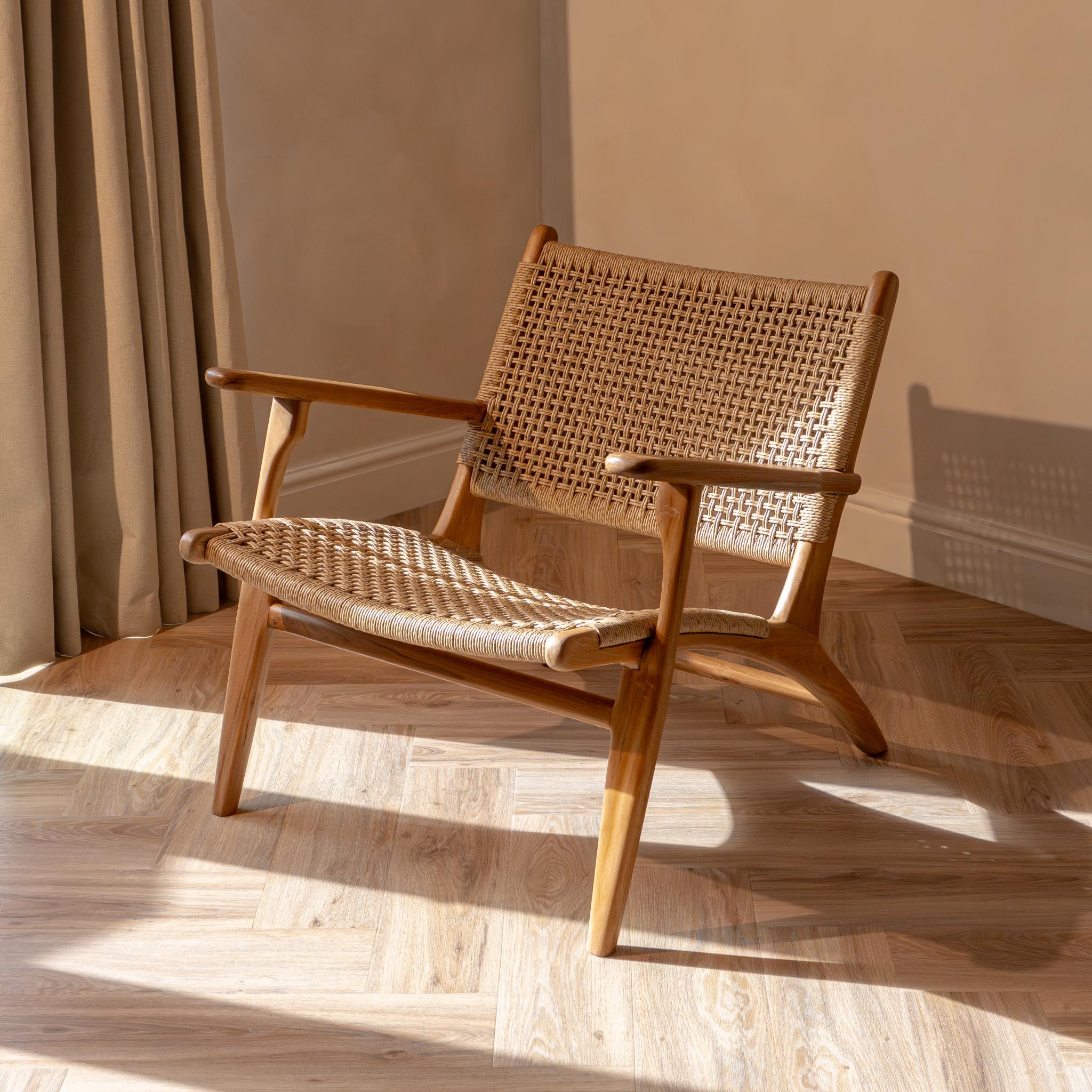The Zara Rattan Lounge Chair with armrests is handcrafted in Bali, combining a clean design with int...