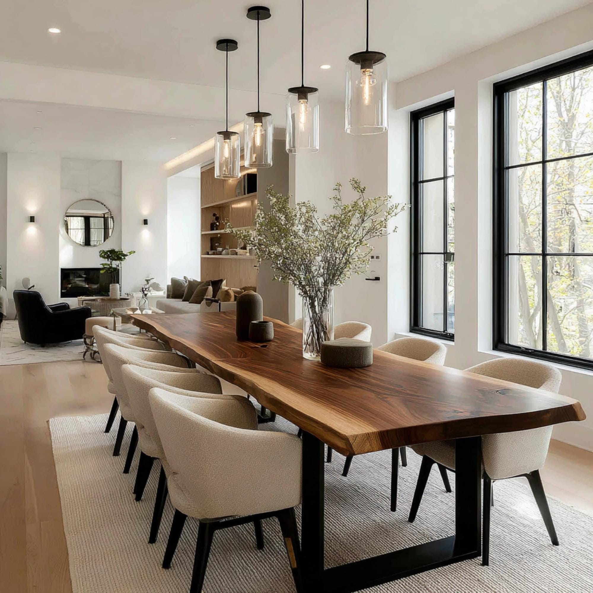 Solid Wooden Farmhouse Dining Table, Handmade Live Edge Walnut Table, Rustic Wooden Kitchen Table, F...