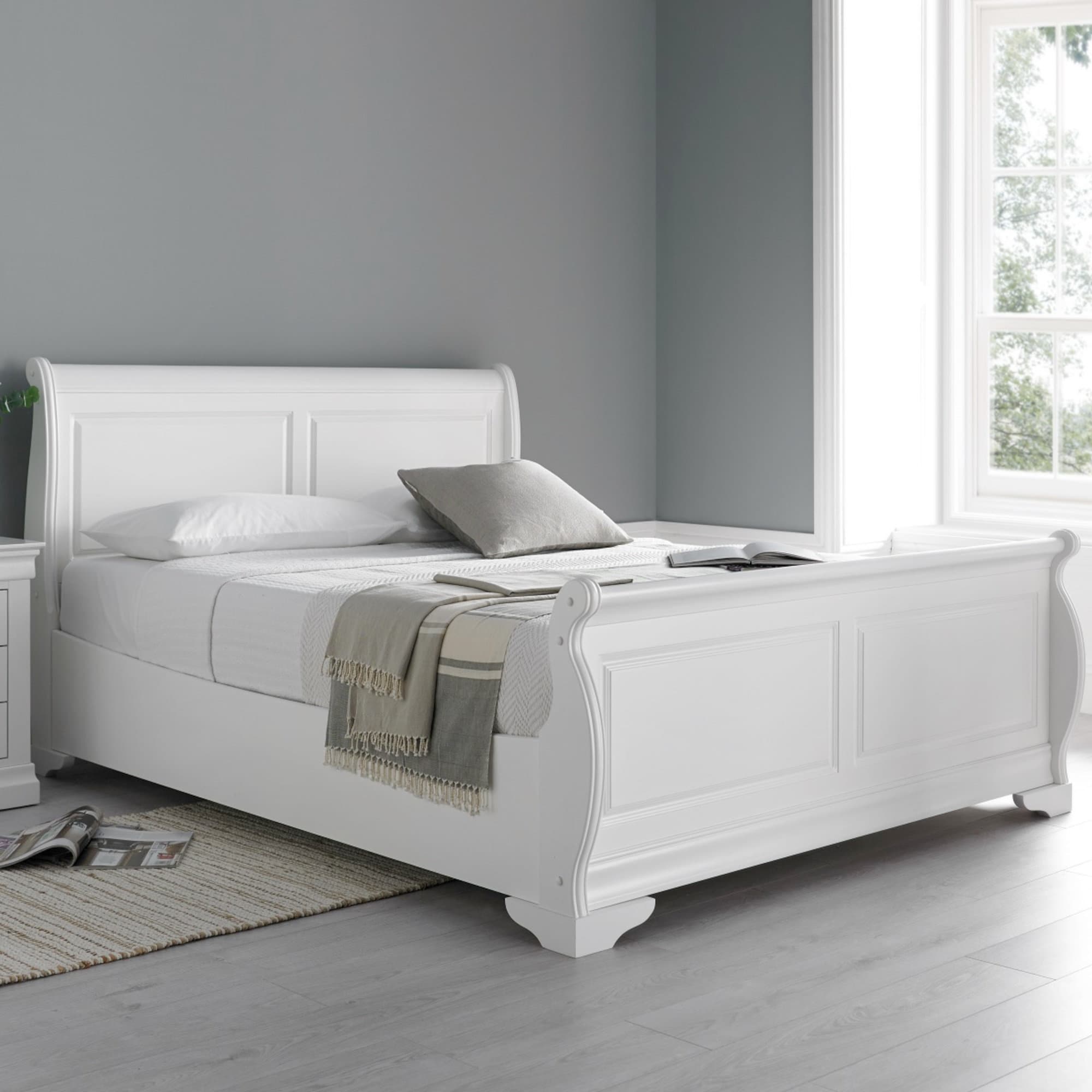 White Wooden Sleigh Style Bed Frame -Double/King by Time4Sleep (Tou...