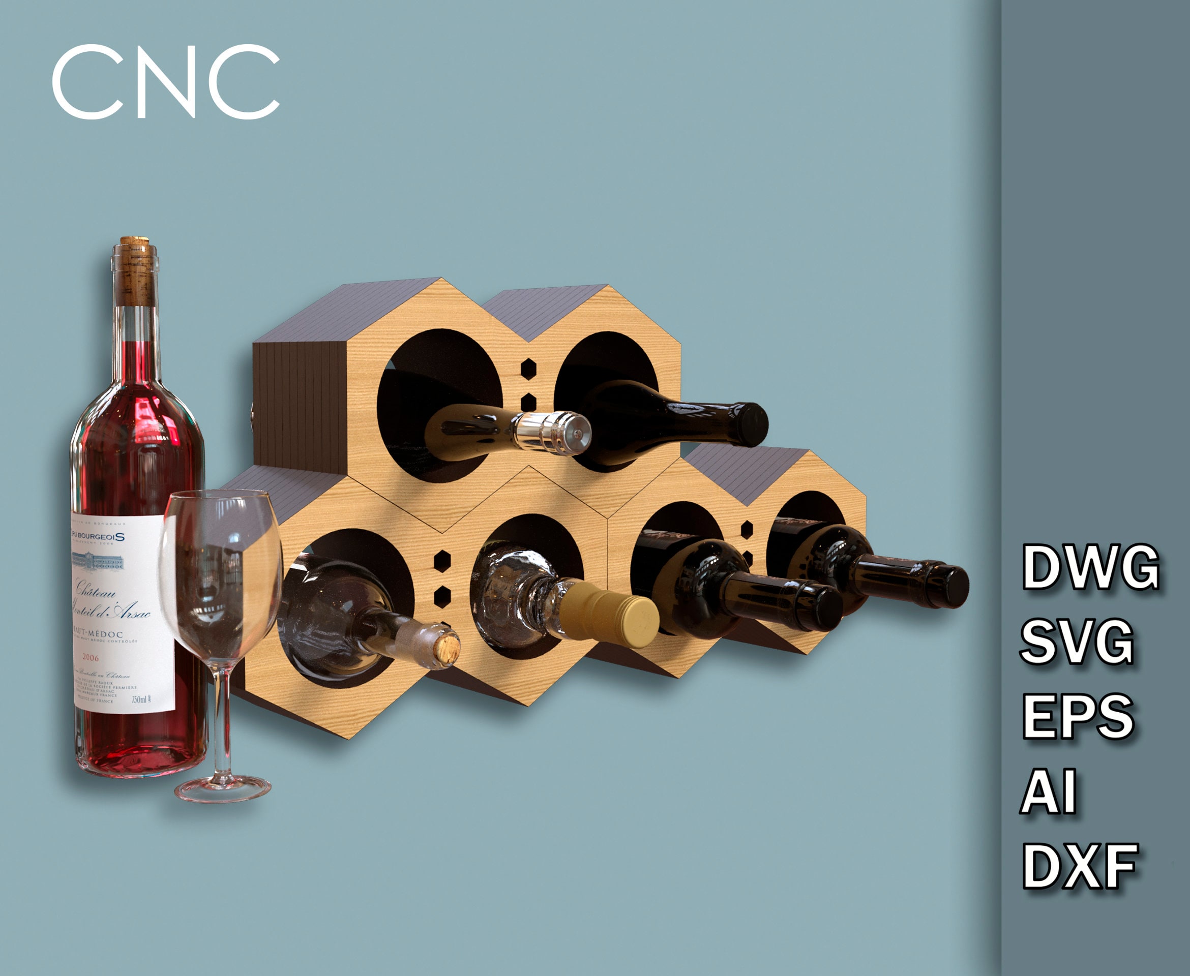 Standing wine bottle holder, Wooden wine rack, Wine holder laser fi...