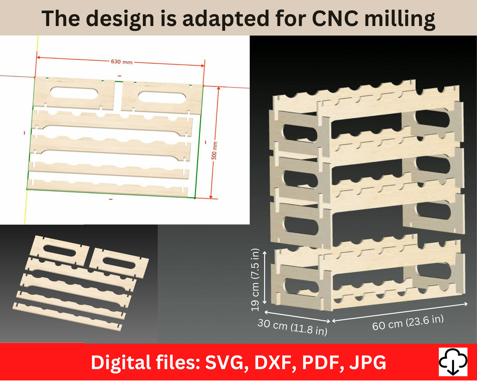 Vector Files (dxf, svg, pdf) that can be used with FreeCAD, Aspire, Vcarve, Carveco ,Artcam or any o...