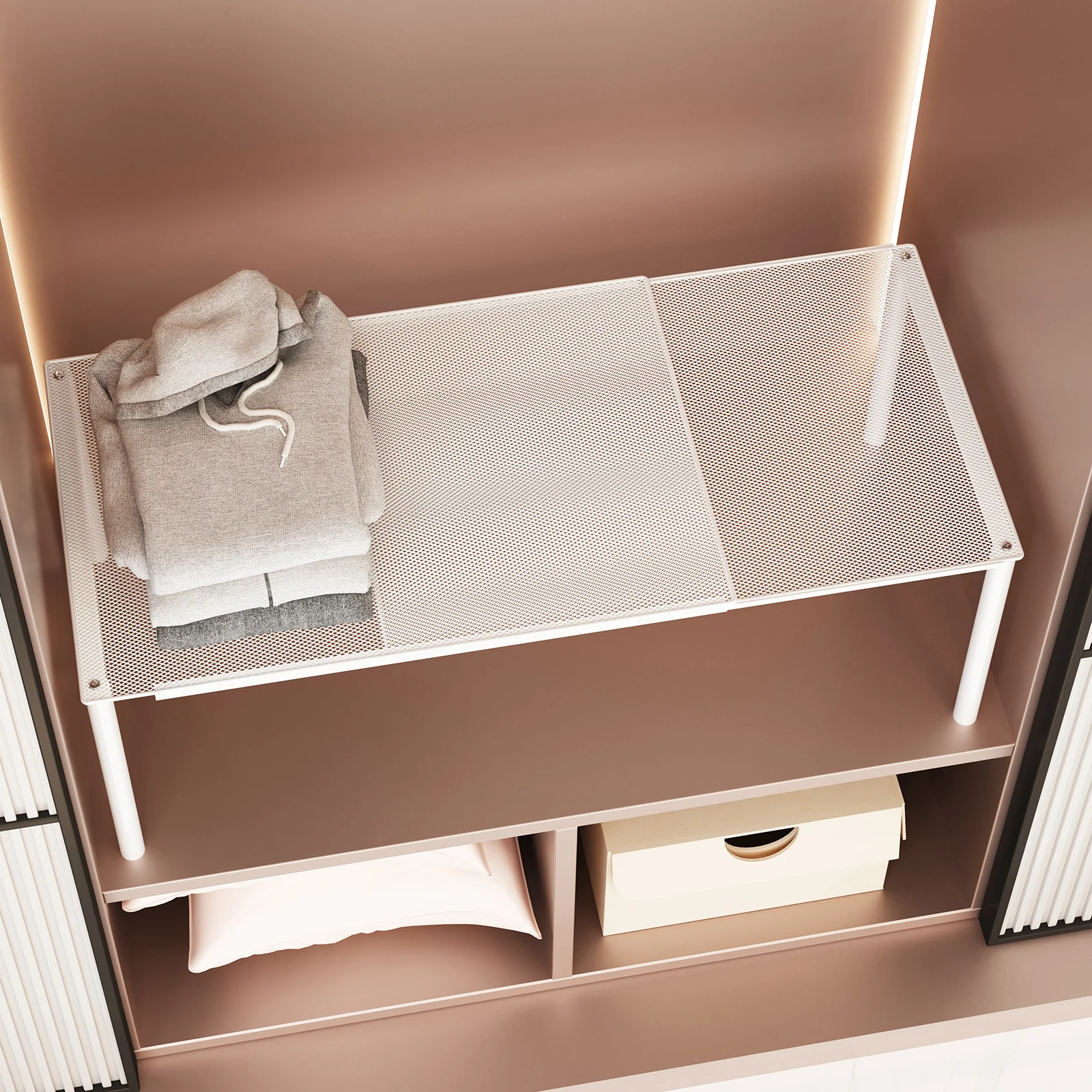 Length-Adjustable Wardrobe Partition Shelf, Wrought Iron Storage Rack, Multi-Layer Stackable Wardrob...