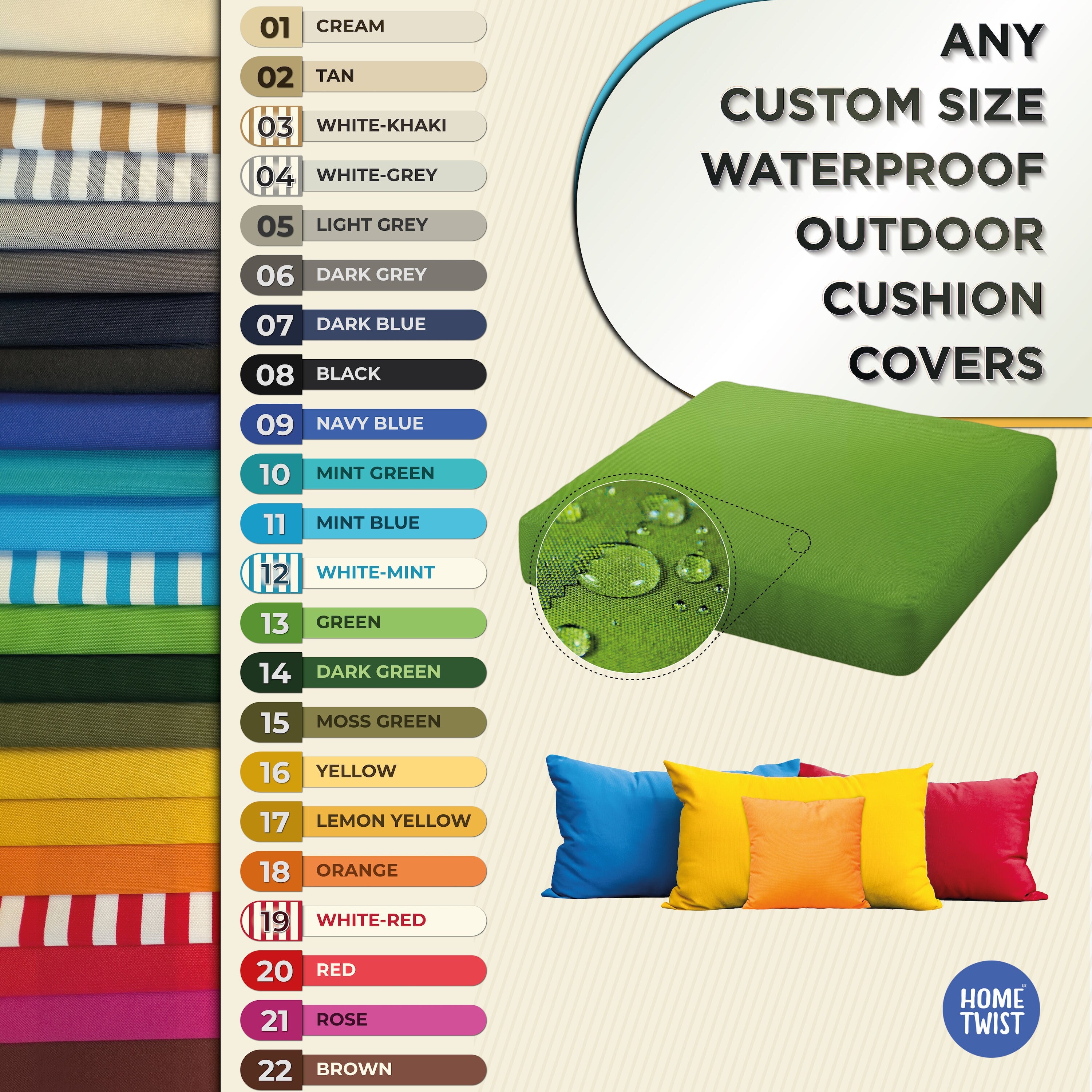 "Outdoor WATERPROOF Cushion Covers Cases Garden Furniture Plain Bench Waterproof Fabric Cushion...