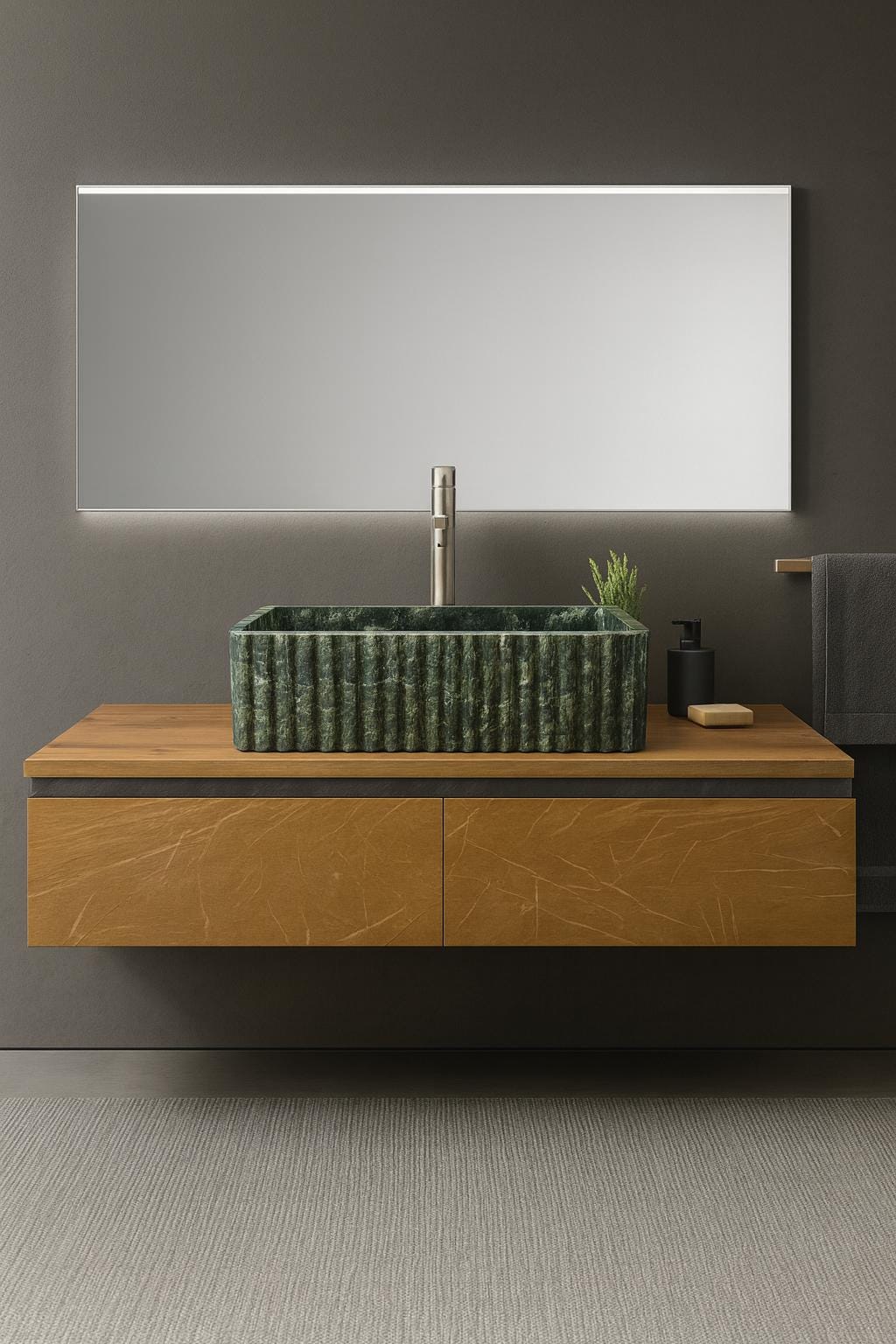 Deep Forest Green Marble Sink 60x40x15 cm - Natural Elegance for Designer Bathrooms Actual Product P...
