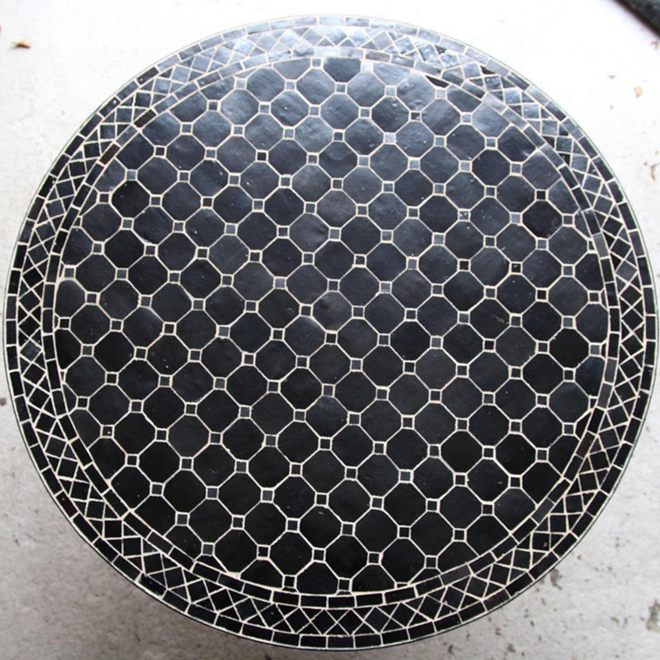 Round Black Mosaic Patio Table, Handmade Outdoor Dining Table, Cust...